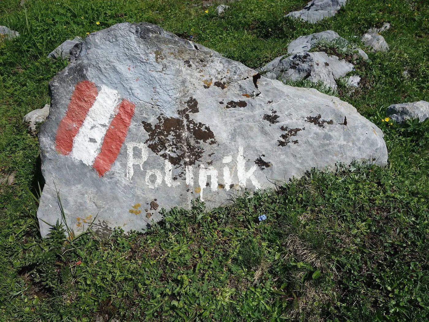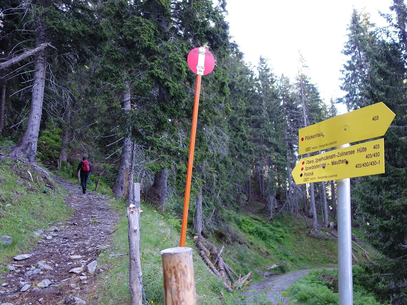 Die Bergtour beginnt beim Plöckenhaus (1244m), wo es ausreichend Parkmöglichkeiten gibt. Zunächst folgt man ostwärts einem Schotterweg, der in das Angerbachtal führt. Wenige Minuten später passieren wird den idyllisch gelegenen Grünsee 1249M) an seinem südlichen Ufer und überqueren im Anschluss den Angerbach über eine Brücke. Bald erreicht man einen Wegweiser, wo man den Schotterweg verlässt und links einem markierten Steig, zunächst über eine Weide und im Anschluss über bewaldetes Gebiet, teilweise recht steil, hoch bis zur verfallenen Unteren Spielbodenalm (1621m) folgt. Der nun deutlich angenehmer zu begehende Steig führt weiterhin durch bewaldetes Gebiet, kurz auch über einen Forststraße, hoch bis zur Waldgrenze. Von dort sind es nur noch wenige Höhenmeter ehe man die Obere Spielbodenalm (1815m) erreicht. Spätestens von dort kann man bereits den Gipfelaufbau des Polinik gut einsehen. Von der Oberen Spielbodenalm führt nun der Steig nordwärts über Almböden bis unterhalb des Spielbodentörls. Dort verliert sich der Steig ein wenig im Gelände und man muss sich selbst die beste Linie hoch zum Spielbodentörl (2095m) suchen. Nun folgt man den wieder gut sichtbaren Markierungen über einen zunehmend steiniger werdenden Steig nordwestwärts hoch bis zum Hauptgipfel des Poliniks (2332m). Das vorgelagerte Gipfelkreuz selbst erreicht man über einen eher schmalen Gipfelgrat, der nochmal Trittsicherheit und ein gewisses Maß an Schwindelfreiheit erfordert.