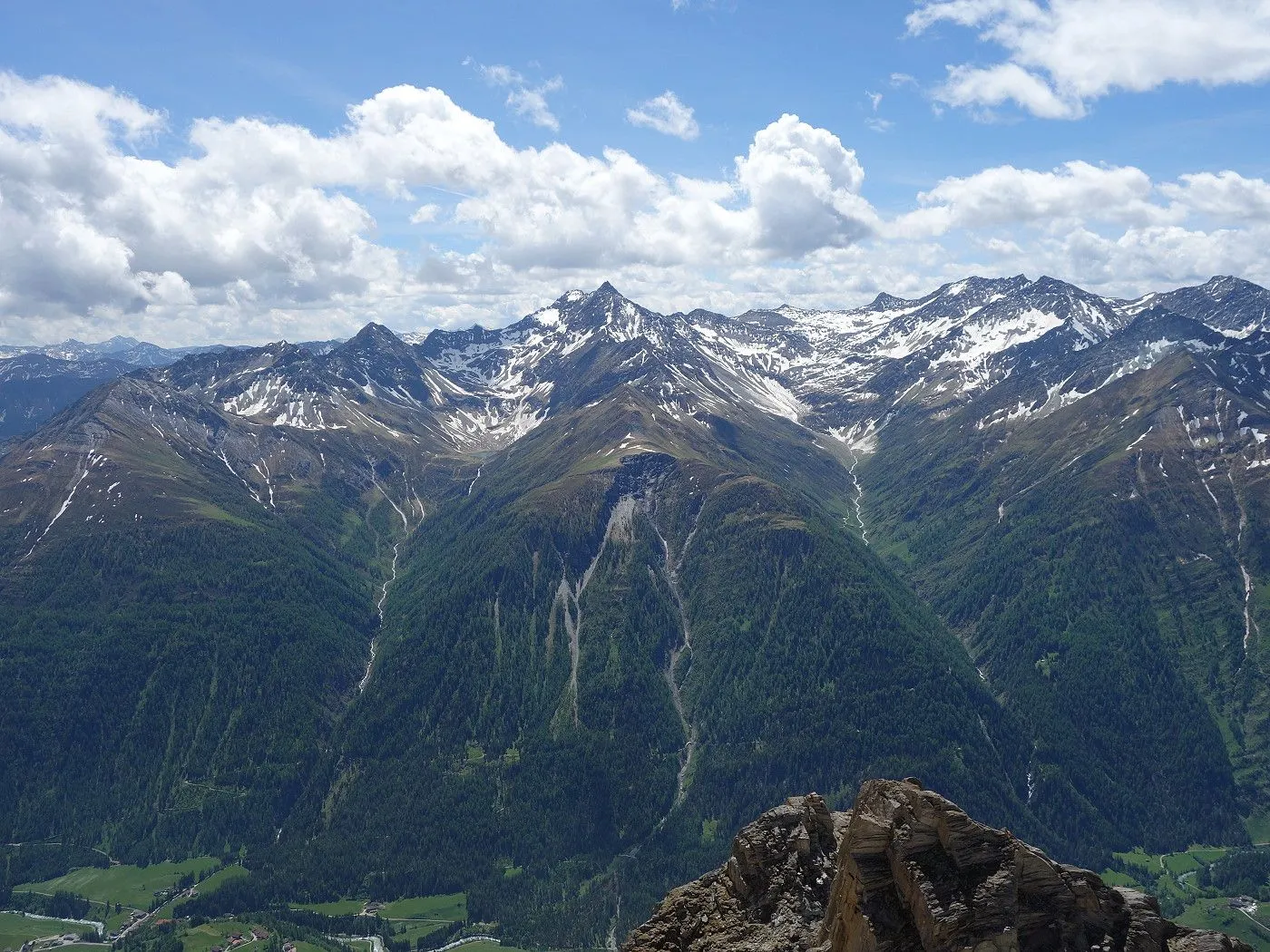 Die Rote Säule thront majestätisch über der Sajathütte und gehört dementsprechend zu einem der beliebten Tourenziele ausgehend von dort. Dabei kann das Tourenziel zum einen über den steil emporführenden und daher spektakulären Klettersteig mit zwei Einstiegsvarianten bestiegen werden oder wie hier beschrieben, über den Normalanstieg. Dieser ist grundsätzlich technisch einfach, sofern trockene Bedingungen herrschen. So ist zu beachten, dass der Steig nach der Sajathütte zunächst sehr steil über das sogenannte Rasenleitl hochführt. Die darauffolgende Querung der Scharte ist mit Sicherungsseilen versehen und ist auch der restliche Aufstieg zum Gipfel mit Stahlseilen gesichert, wobei hier der Schwierigkeitsbereich I+ nicht überschritten wird. Trotzdem ist hier Schwindelfreiheit und Trittsicherheit vonnöten. Den Gipfel erreicht, bietet sich einem ein wunderschönes Bergpanorama, das ua den Großvenediger, die Mahlamspitze, den Lasörling und den Hochschober bietet. Der geübte und trittsichere Bergsteiger wird an dieser Bergtour sicherlich Gefallen finden.