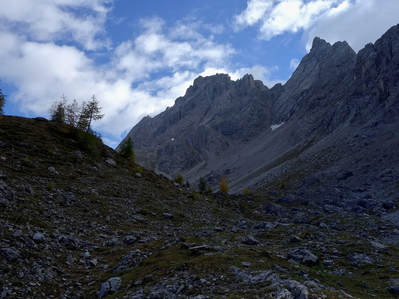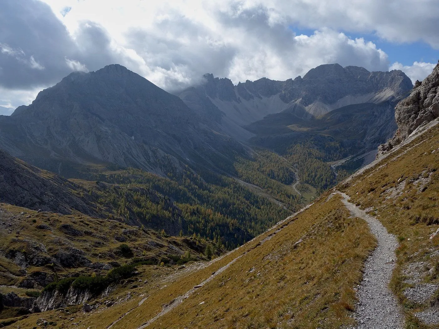 Vom Gipfel Seekofel (2738m) wieder über den Klettersteig zurück zur Ödkarscharte (2596m). Von dort wenige Meter hoch und im Anschluss Abstieg über einen schottrigen Steig hinab in das sogenannte Mohamedanerkar. Weiter dem Steig folgend bis zum Kerschbaumertörl (2285m) und hier sehr steil abwärts bis zum Marcherstein (2074m). Nun über den bekannten Steig und später Schotterweg zurück zum Ausgangsort.