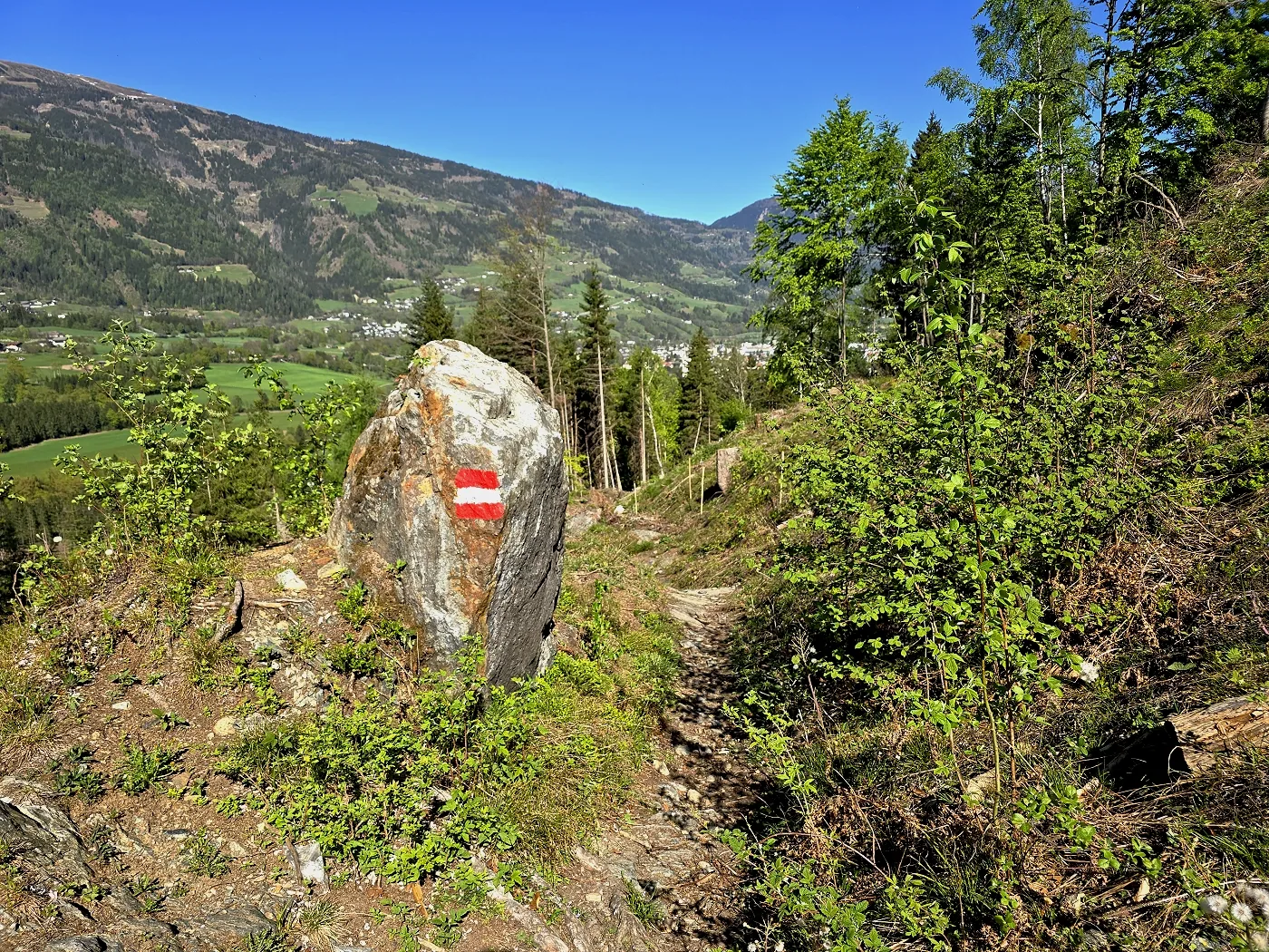 Wir folgen dem rot-weiß-rot markierten Naturlehrpfad vorbei an diversen Schautafeln bis zu einer weiteren Weggabelung (770m) direkt oberhalb des Sonnenhofs. Achtung: An dieser Stelle befindet sich kein Wegweiser! Wir verlassen hier den Lehrpfad und folgen einem schmalen Steig (Markierung beachten), der uns steiler bergauf bis zu einer Asphaltstraße leitet. Dieser folgen wir weiter bergan zu den schön gelegenen Taxerhöfen (895m), von wo aus sich ein herrlicher Ausblick auf Lienz und die Schleinitz bietet.