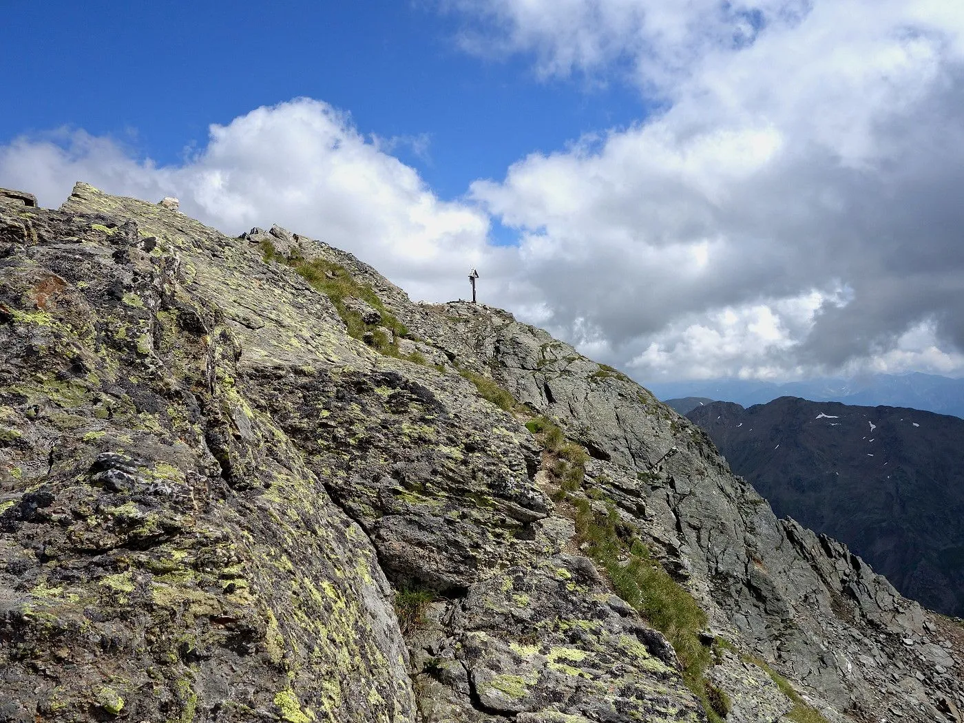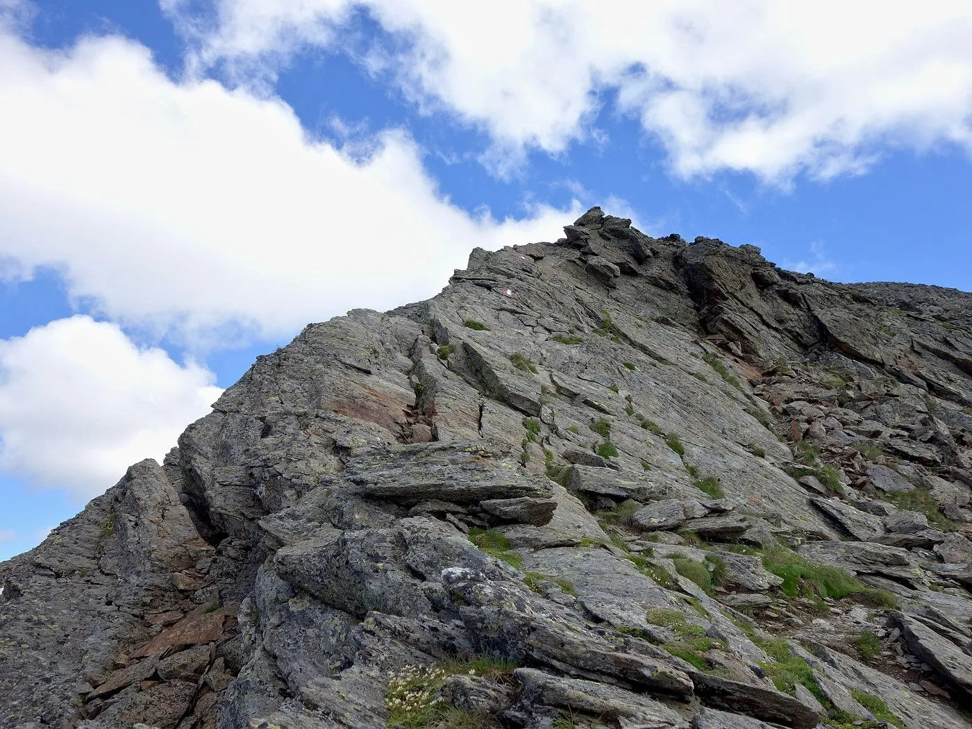 Schmaler Gipfelgrat: Der Grat wird schmal und beinhaltet Kletterstellen der Schwierigkeit I, Trittsicherheit ist zwingend notwendig. |