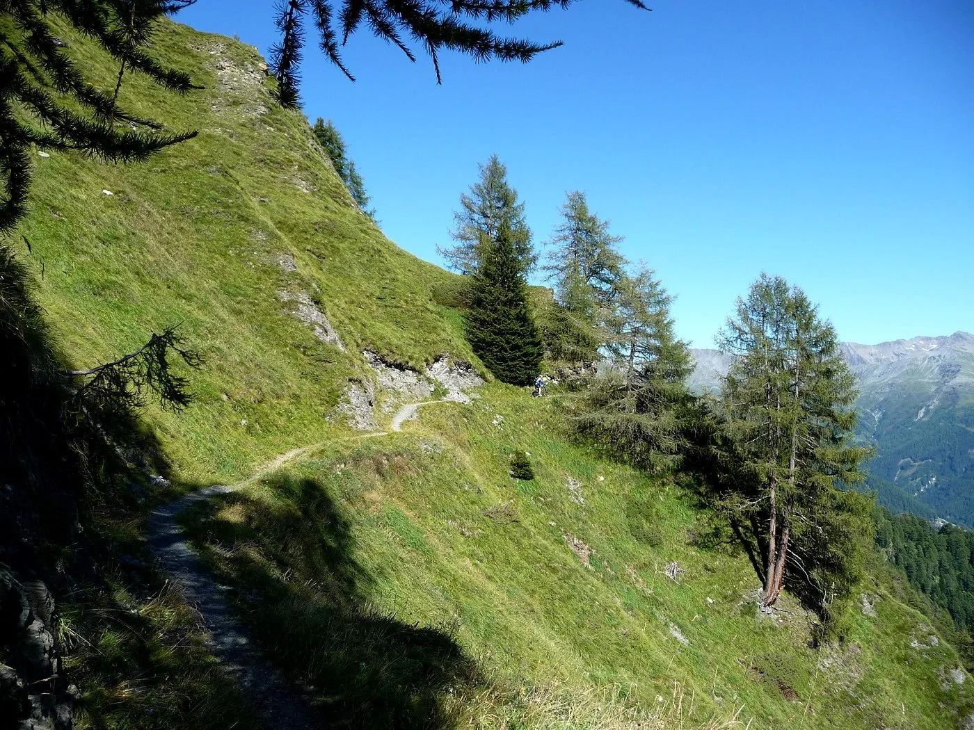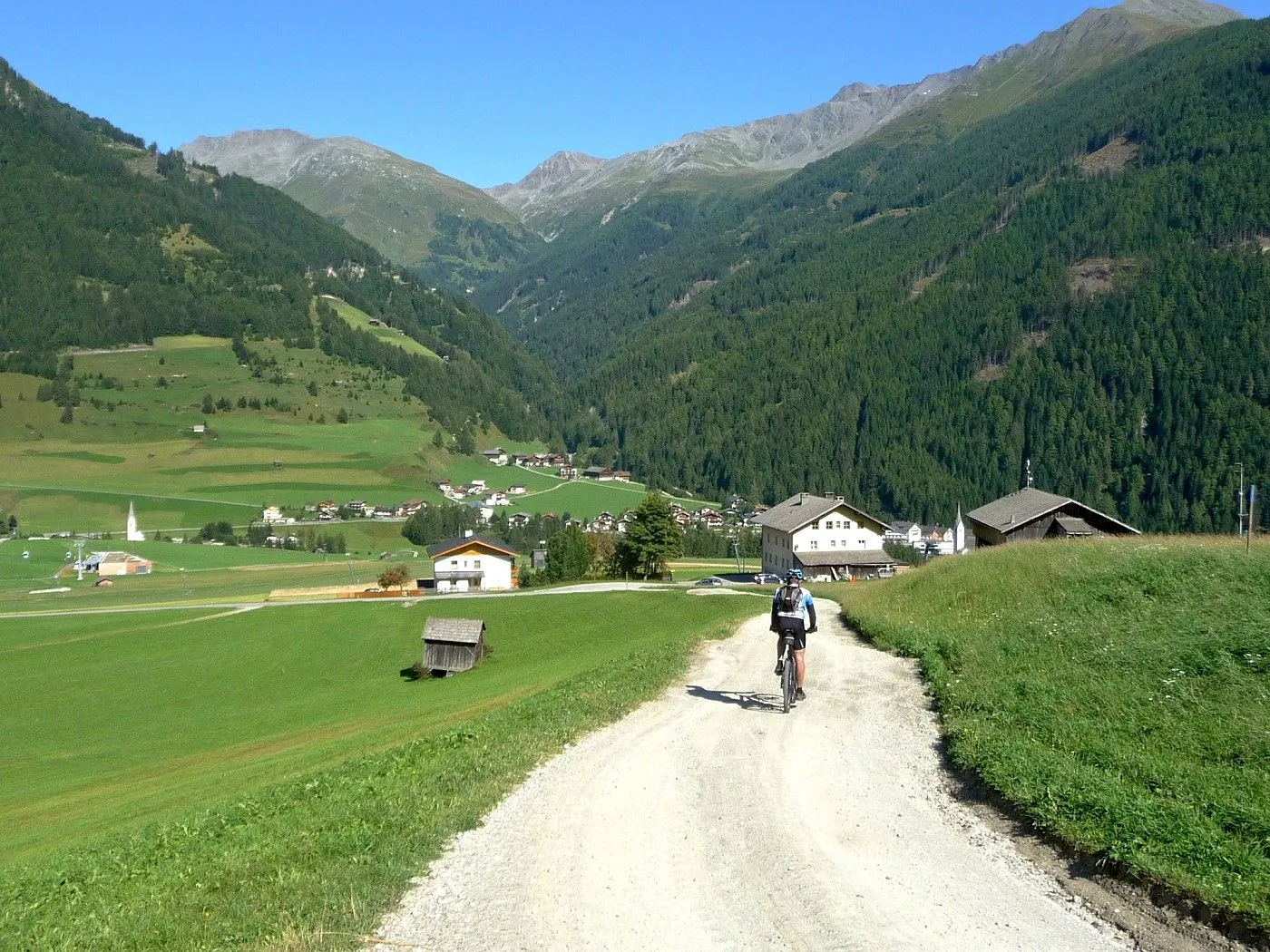 Vom Kals-Matreier-Törlhaus (2207m)fährt man zunächst über einen Singletrail den Panoramaweg Richtung Blauspitze weiter. Geübte können den gesamten Steig fahren, ansonsten muss man das Rad zeitweise schieben. Bei der Ganotzalm (2070m) angekommen, führt ein breiter Forstweg hinunter bis Großdorf (1364m). Von dort über die Landesstraße von Kals am Großglockner (1324m), durch Unterlesach (1300m) und Staniska (1104m), zurück bis Huben (819m).