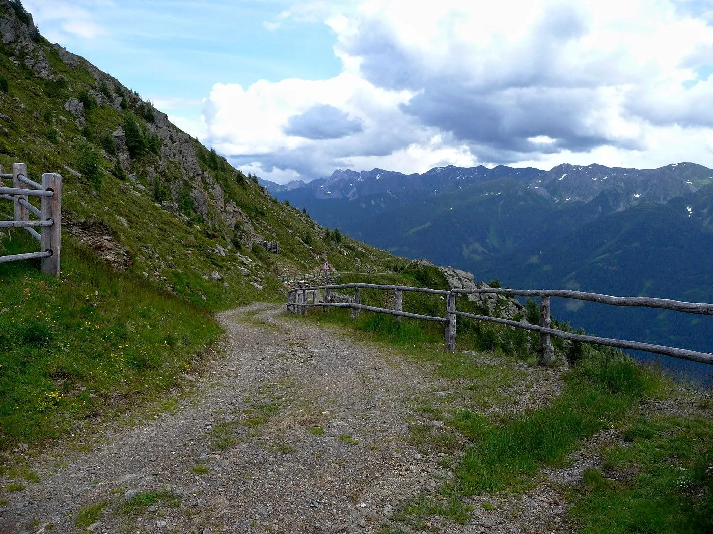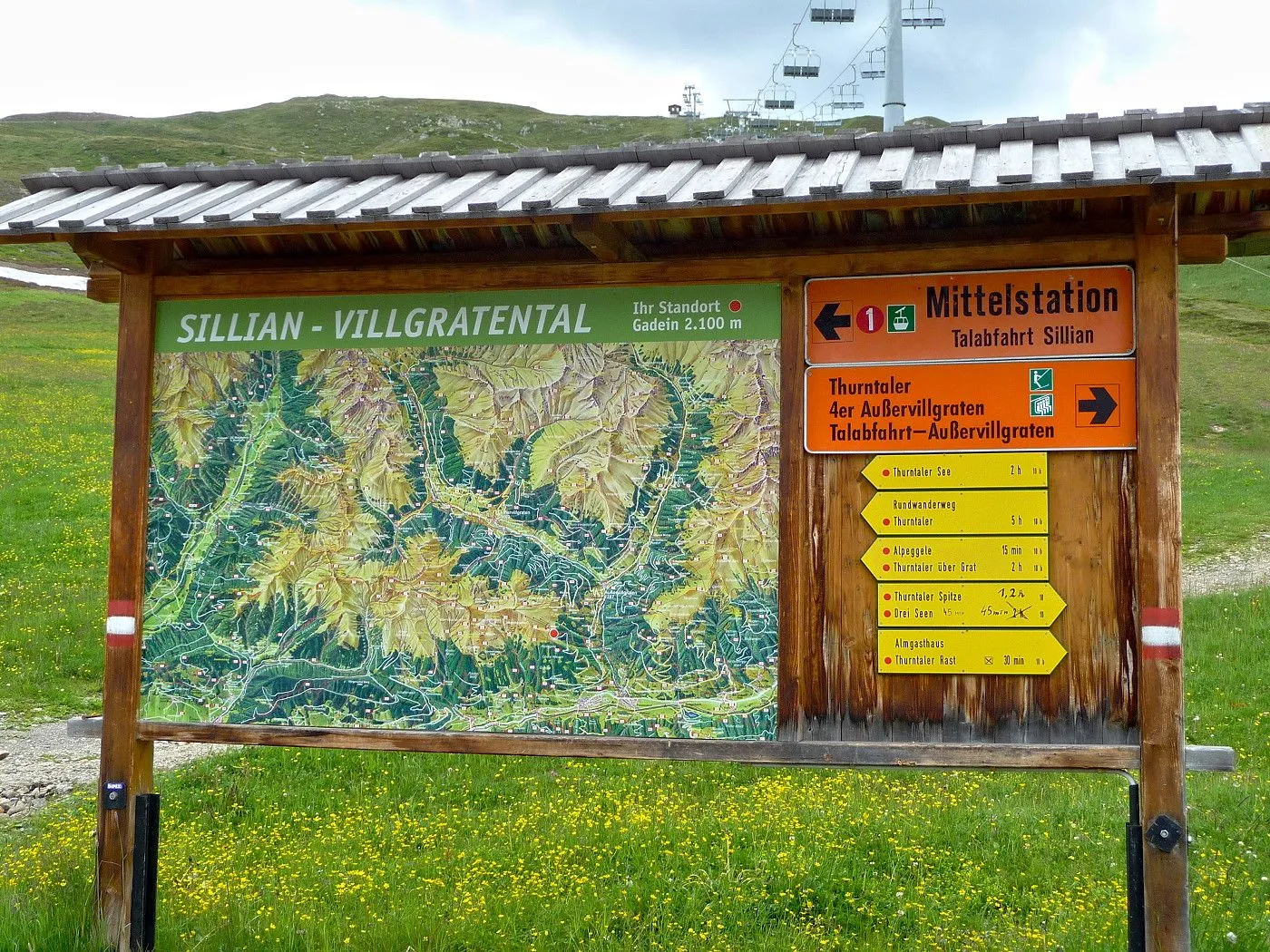 Vom Marchkinkele zunächst weiter über einen relativ guten Weg, der schließlich im Bereich Hochrast in einen Singletrail übergeht. Von der Hochrast bis zum Gasthof Gadein (2090m) am Thurntaler muss man das Rad zum Teil schieben, wobei geübte Biker auch den größten Teil fahren werden. Erst kurz vor der Gadein wird der Weg wieder breit und sehr gut befahrbar. Vom Gasthof Gadein fährt man dann einen sehr gut befahrbaren Forstweg hinunter bis zur Stalpe (1540m), wo eine asphaltierte Straße beginnt. Dieser folgt man abwärts zurück bis Sillian.