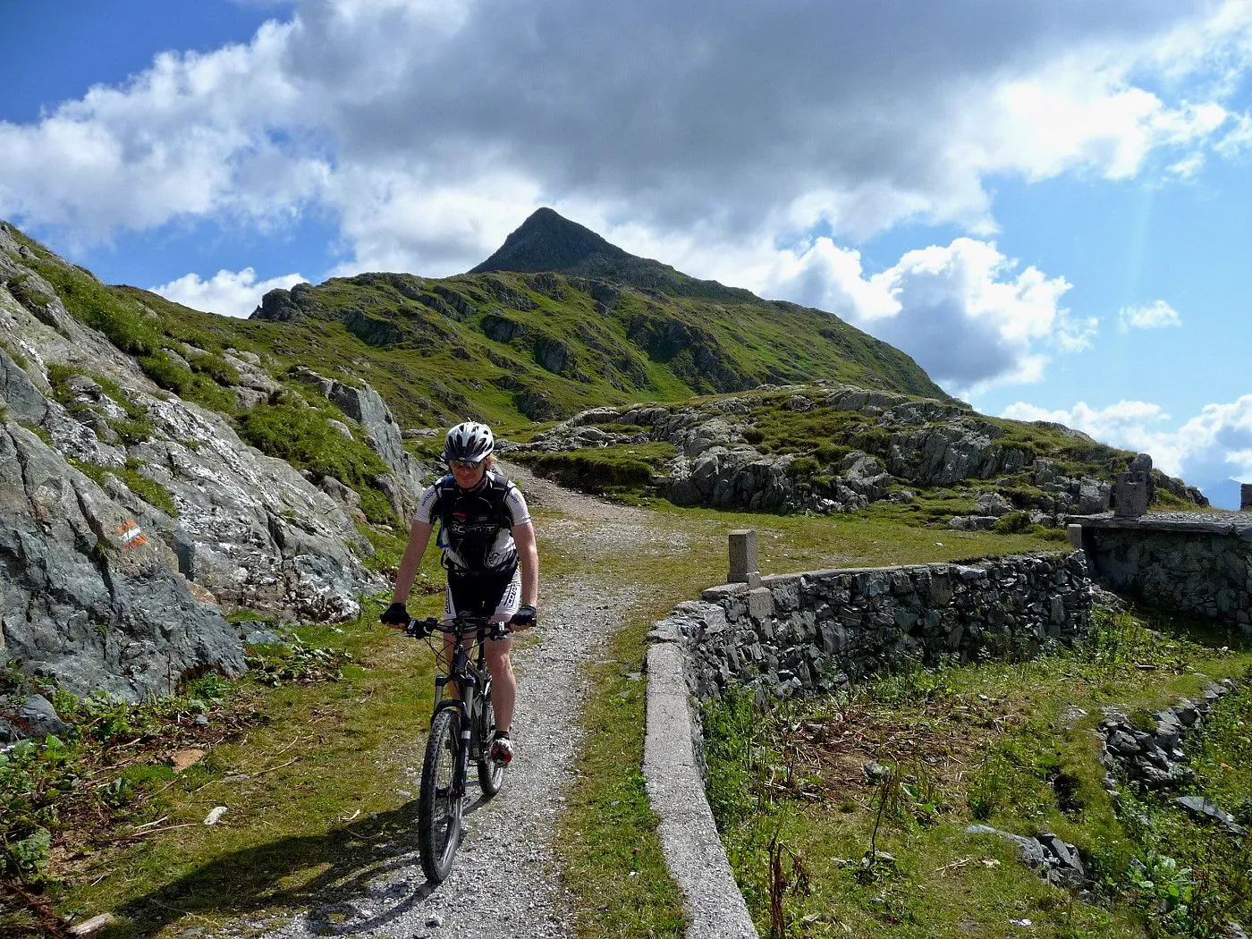 Diese Mountainbike-Tour stellt eine echte Herausforderung für konditionsstarke und erfahrene Fahrer dar. Mit etwa 135 Kilometern Länge und rund 3750 Höhenmetern im Aufstieg verlangt sie nicht nur körperliche Ausdauer, sondern auch technisches Können auf unterschiedlichen Untergründen. Die Strecke führt über asphaltierte Straßen, gut befahrbare Forstwege sowie anspruchsvolle, teilweise sehr steinige Singletrails. Viele Abschnitte sind fahrbar, doch es gibt auch mehrere Passagen, bei denen das Rad geschoben oder getragen werden muss – insgesamt zwischen 500 und 700 Höhenmetern. Das erfordert neben guter Technik vor allem Durchhaltevermögen und eine genaue Streckenplanung. Die Tour dauert inklusive Pausen etwa 13 Stunden, weshalb ausreichend Tageslicht und eine gute Zeitplanung entscheidend sind. Landschaftlich bietet sie spektakuläre Ausblicke und abwechslungsreiche Eindrücke, von weiten Tälern bis zu hochalpinen Gipfeln. Aufgrund der Länge und des Anspruchs ist sie nur für ausgezeichnet trainierte Mountainbiker geeignet, die ihre Grenzen ausloten möchten.
