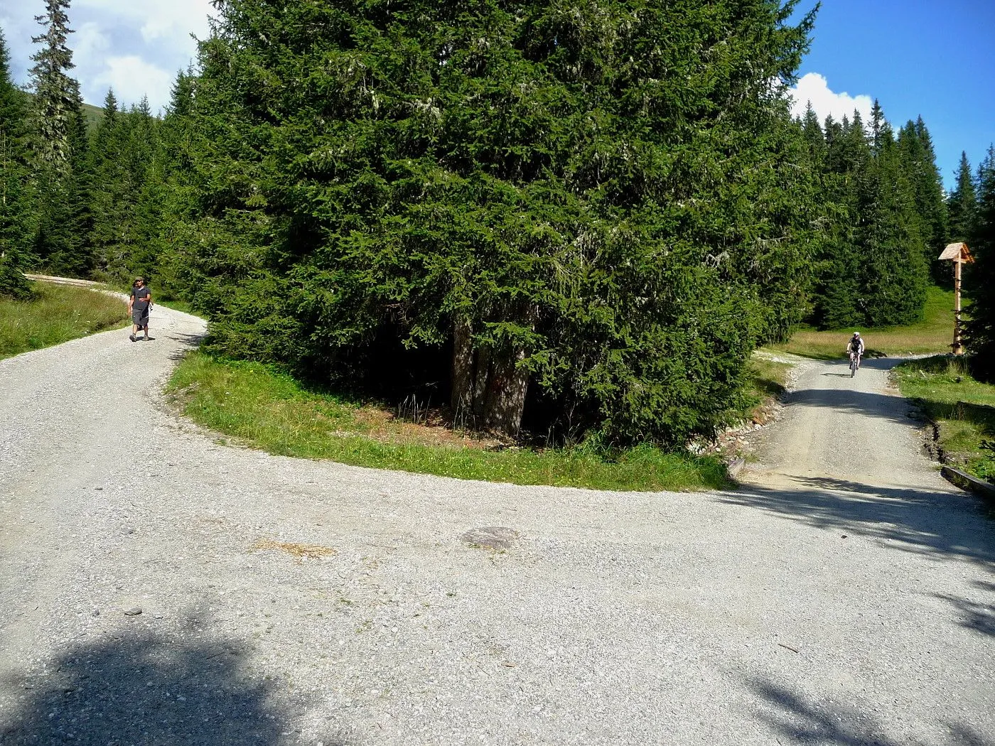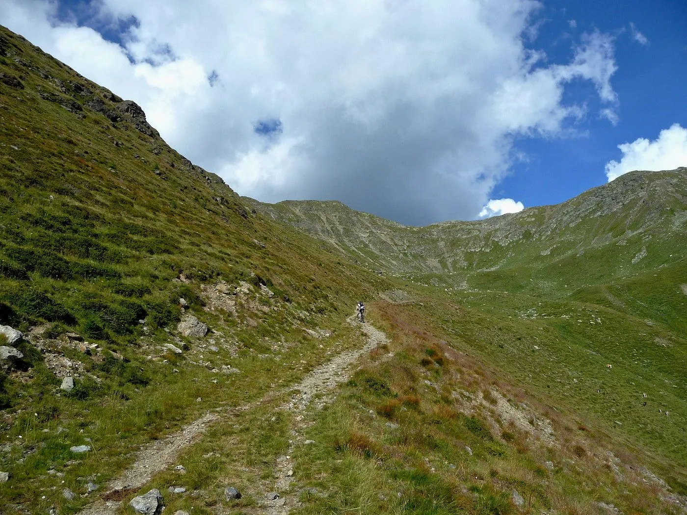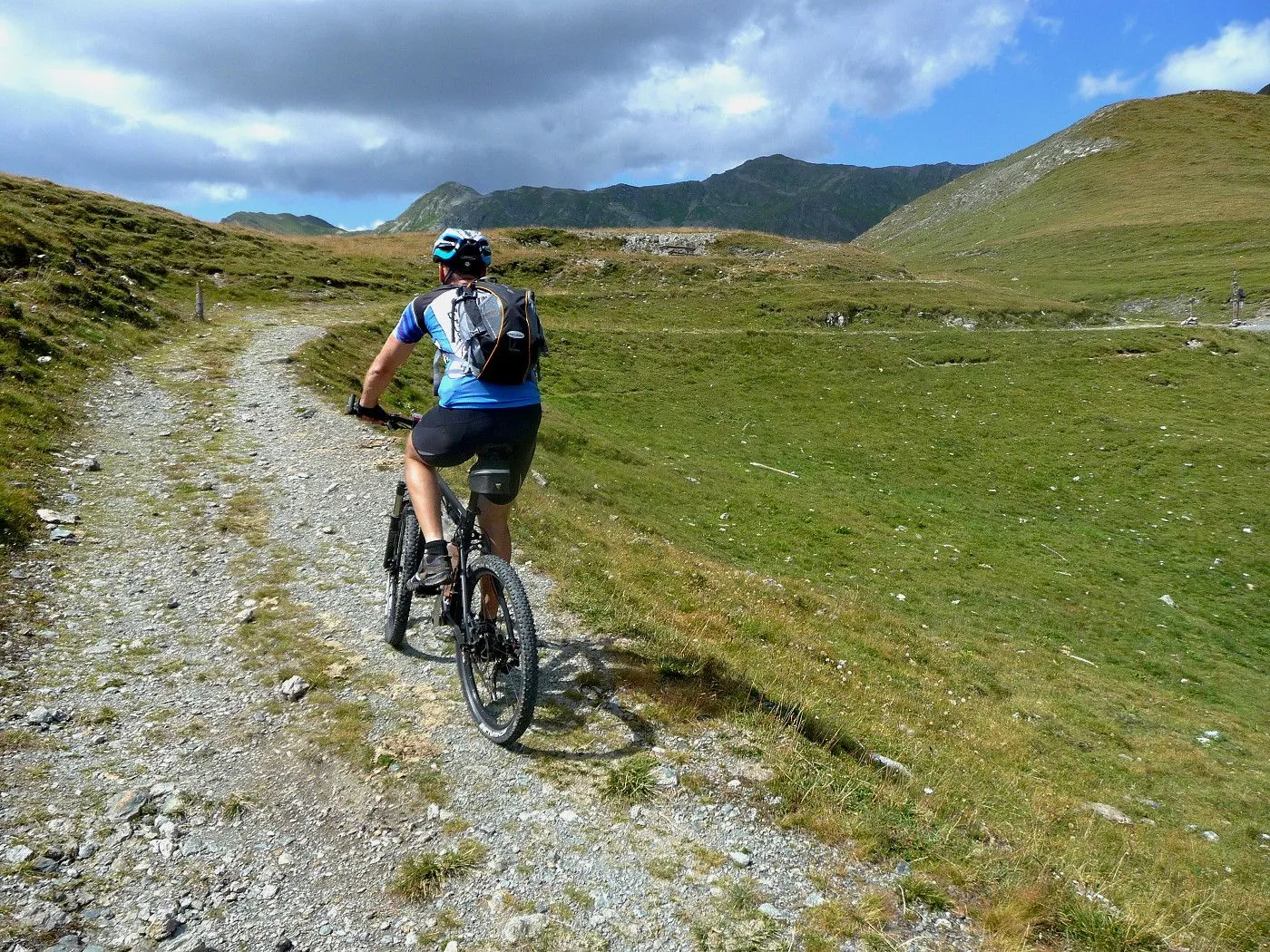 Von Lienz (680m) über den Radweg bis Tassenbach. Von Tassenbach auf der Landesstraße hoch zum Kartitscher Sattel (1540m) und dann hinab bis zum Biathlonzentrum (1370m) bei Obertilliach. Dort beginnt der Schotterweg, der durchwegs in einem sehr guten Zustand und somit einfach zu befahren ist. Richtung Süden diesem Weg folgend, erreicht man unschwierig die Porzehütte (1942m). Diese fährt man nicht an, sondern folgt einem Karrenweg Richtung Tillacher Joch. Dieser Weg ist anfangs noch gut zu befahren, bis man zur Schiebepassage gelangt. Diese ist aber recht kurz und man erreicht schlussendlich das Tilliacher Joch (2094m). Von dort schiebt man das Rad noch ein kurzes Stück hoch Richtung Porze, bis man Forcella Dignas (2115m) erreicht. Vorbei an Kriegsstellungen fährt man nun über eine alte Militärstraße abwärts. Vor allem im oberen Bereich ist diese Straße extrem steinig und hohe Konzentration ist gefordert. Erst ab Malga Dignas wird die Straße deutlich besser und ist sogar teilweise asphaltiert. Bei Bivio Ciadon (1466m) ist der tiefste Punkt erreicht und von dort geht es wieder aufwärts. Die Straße ist anfangs noch sehr gut, aber mit ein paar recht steilen Passagen recht fordernd. Ab der Malga Londo wird der Weg aber deutlich schlechter. Anfangs noch befahrbar, geht der Weg später nur noch in einen Steig über. Spätestens dort muss man das Bike schieben. Beschwerlich erreicht man schlussendlich den Passo Palombino (2035m), von wo man bereits den nächsten, schweren Touranstieg (den Kniebergsattel) sehen kann. Zunächst führt uns ein steil abfallender Steig abwärts, der dann später in einen recht gut befahrbaren Weg übergeht. Vorbei an der Malga Melin fährt man über eine gute Straße weiter bis man zu einer markanten Wegkreuzung (1460m) gelangt. Von dort fährt man durch das Val Digon Richtung Casera Silvella. Diese erreicht man schließlich über eine sehr gute Schotterstraße. Nun wird der Weg deutlich ruppiger. Trotzdem ist er immer befahrbar und nach beschwerlichen Höhenmetern erreicht man schließlich den Passo Silvella (Kniebergsattel) (2329m). Bis dorthin hat man bereits knapp 3000 Höhenmeter im Aufstieg überwunden! Vom Passo Silvella führt ein recht steiniger Trail abwärts, der später in einen sehr guten Weg übergeht. Über diesen erreicht man die Alpe-Nemes-Hütte (1877m). Nach kurzer Stärkung zunächst abwärts zu einer Weggabelung (1770m), wo man rechts hoch zur Klammbachalm (1944m) fährt. Dieser Weg ist zwar recht steil, aber sehr gut befahrbar. Ab der Klammbachalm wird der Weg extrem schwierig. Durch Grasbewuchs und dem steinigen Untergrund können sich nur geübte Biker im Sattel halten. Spätesten auf einer Höhe von 2300m muss man das Bike schieben bzw. tragen. Unterhalb der Hollbrucker Spitze vorbei auf einen Sattel (2500m), wo man auf den Karnischen Höhenweg stößt. Nun hat man das Tourdach dieser Mountainbiketour erreicht und insgesamt 3750Hm in den Beinen! Von dort folgt man in westlicher Richtung dem schmalen, aber durchwegs befahrbaren Steig bis zur Sillianer Hütte (2450m). Weiter über einen steilen Weg hinunter zur Leckfeldhütte (1918m), der durch groben Untergrund gekennzeichnet ist. Daher ist vor allem bis dorthin nochmals hohe Konzentration gefordert. Danach über eine sehr gut befahrbare Forststraße hinunter bis nach Sillian (1103m) und von dort über den Radweg zurück nach Lienz (675m).