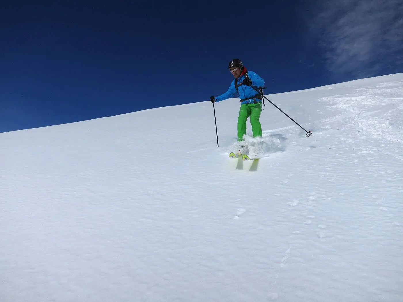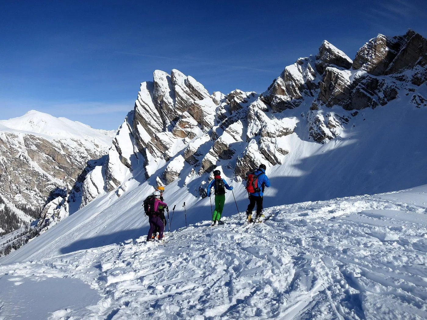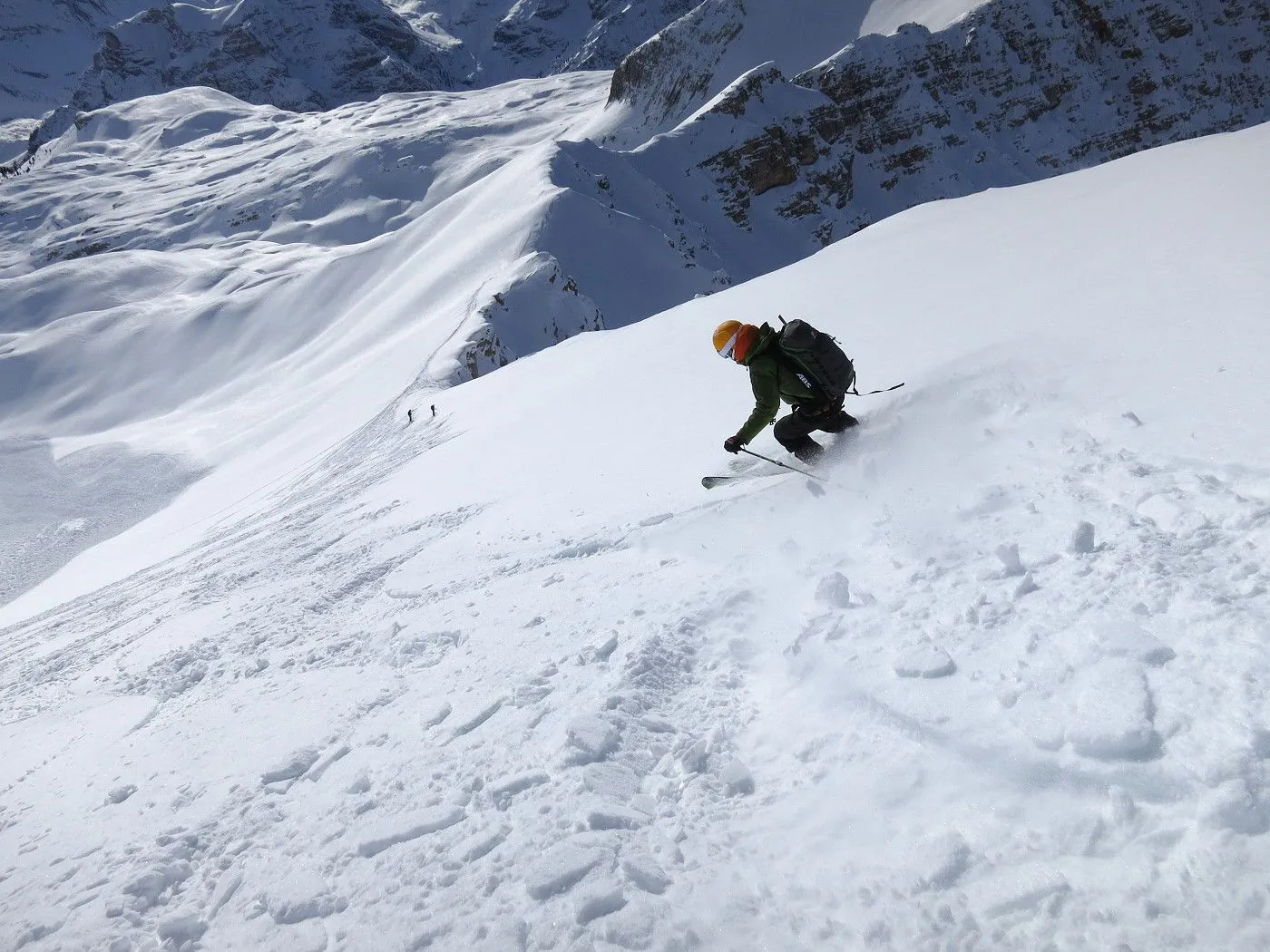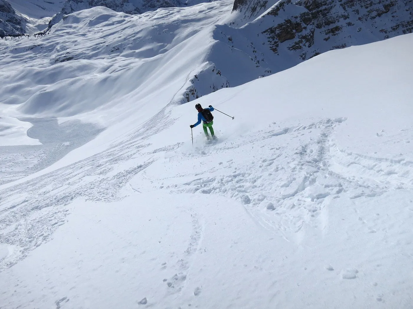 Lawinengefährdung: Beschriebene Abfahrtsvariante nur bei sicheren Verhältnissen befahrbar, dafür bei guten Schneeverhältnissen ein Genuss. |