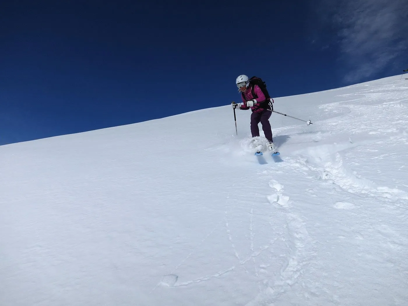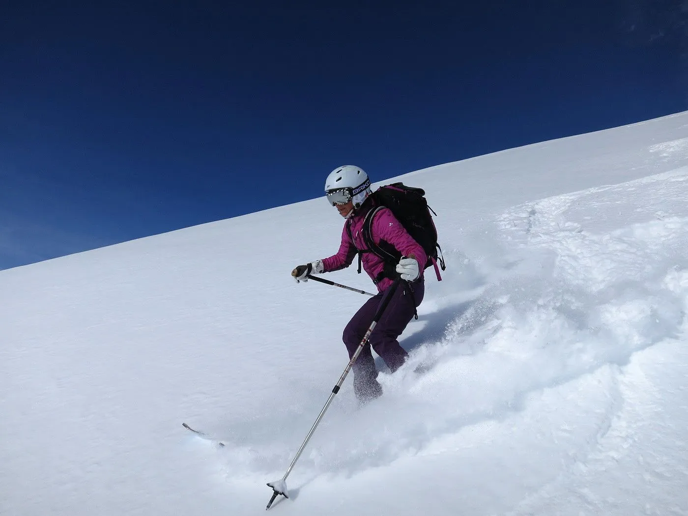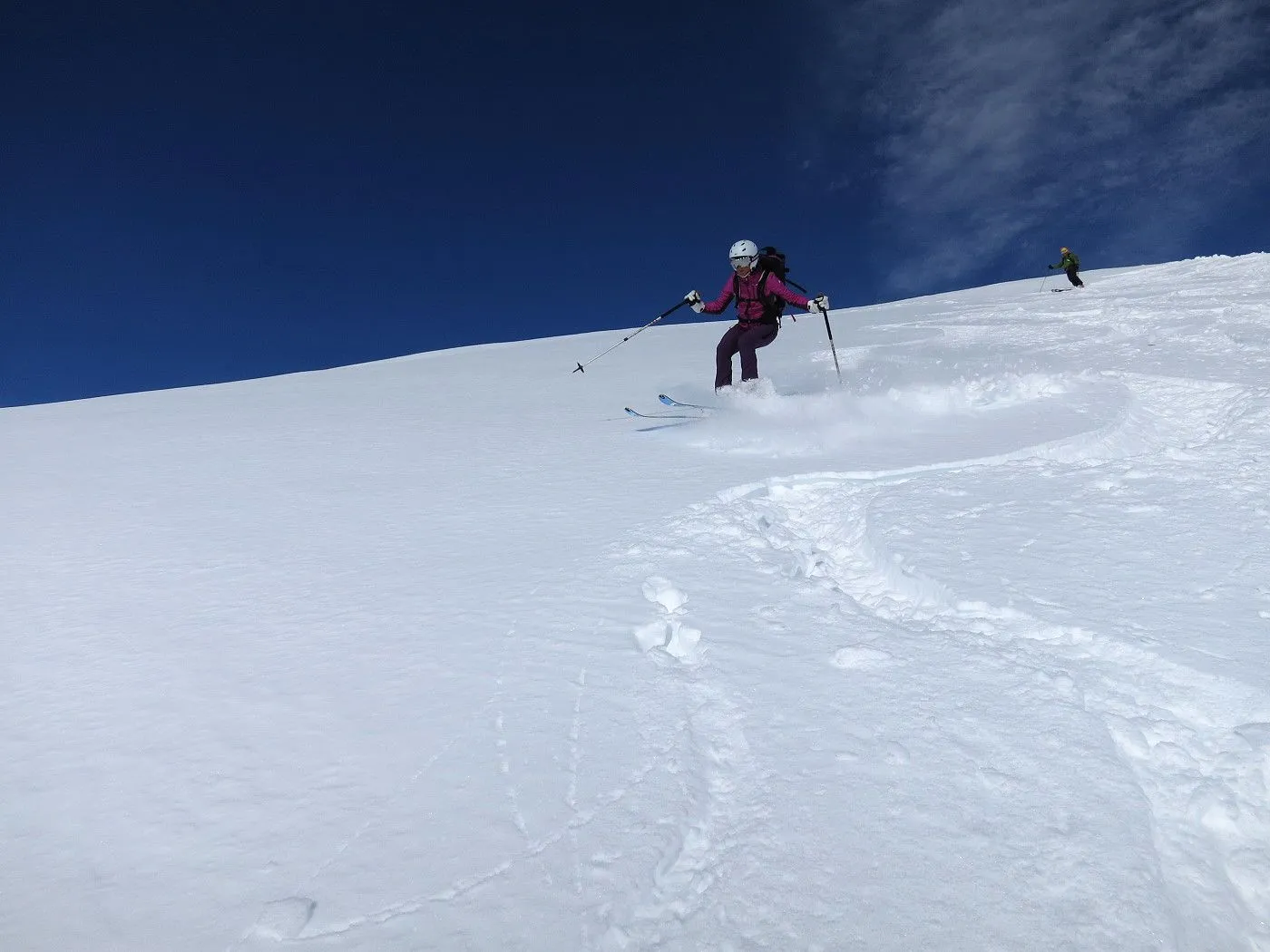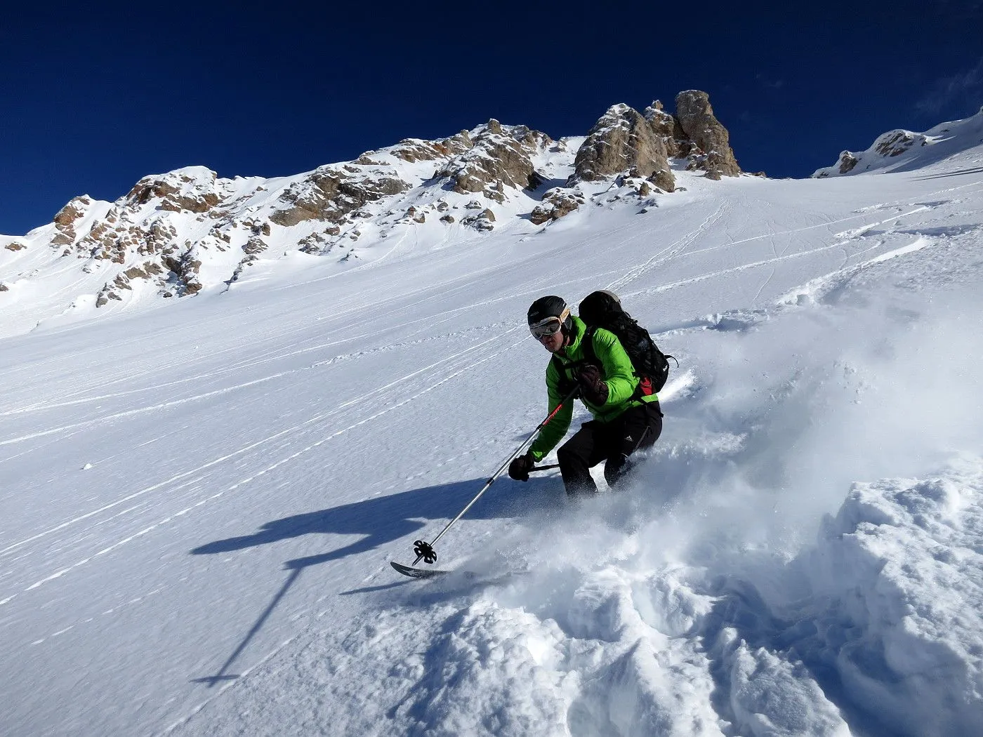 Lawinengefährdung: Beschriebene Abfahrtsvariante nur bei sicheren Verhältnissen befahrbar, dafür bei guten Schneeverhältnissen ein Genuss. |