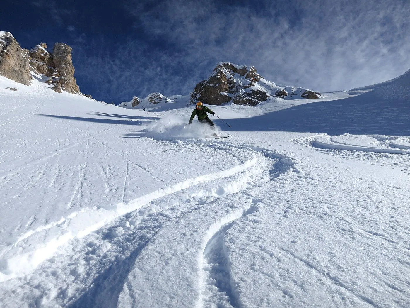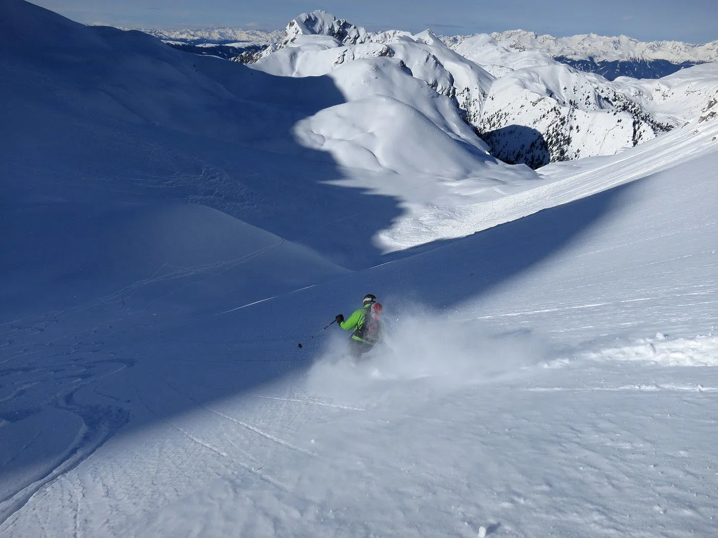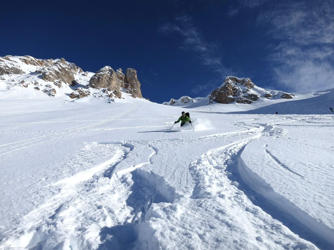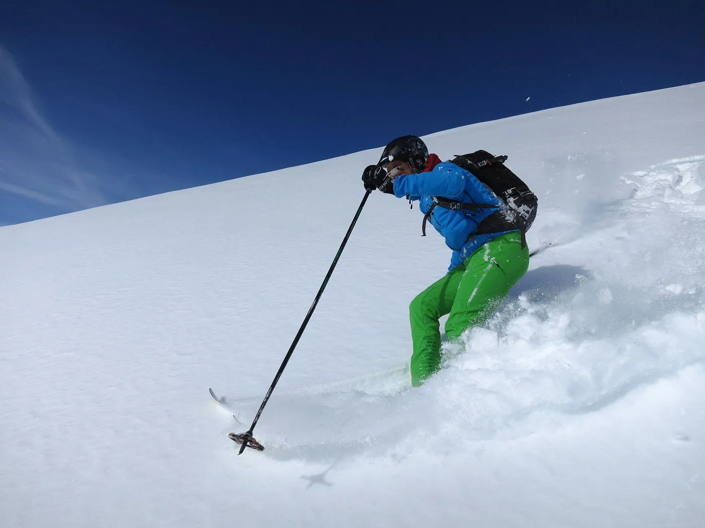 Lawinengefährdung: Beschriebene Abfahrtsvariante nur bei sicheren Verhältnissen befahrbar, dafür bei guten Schneeverhältnissen ein Genuss. |