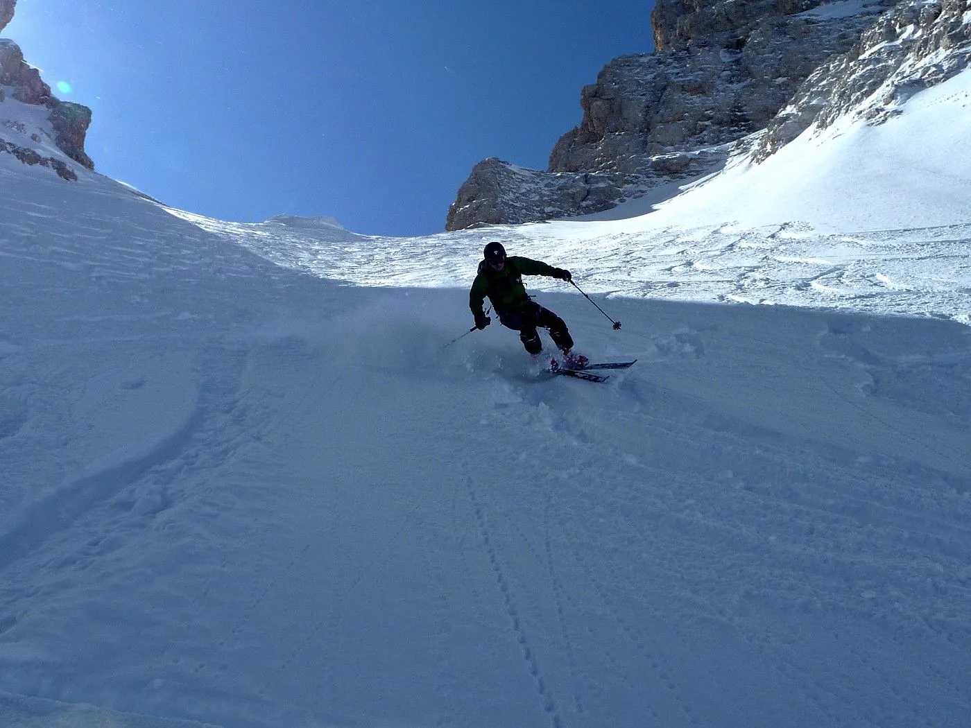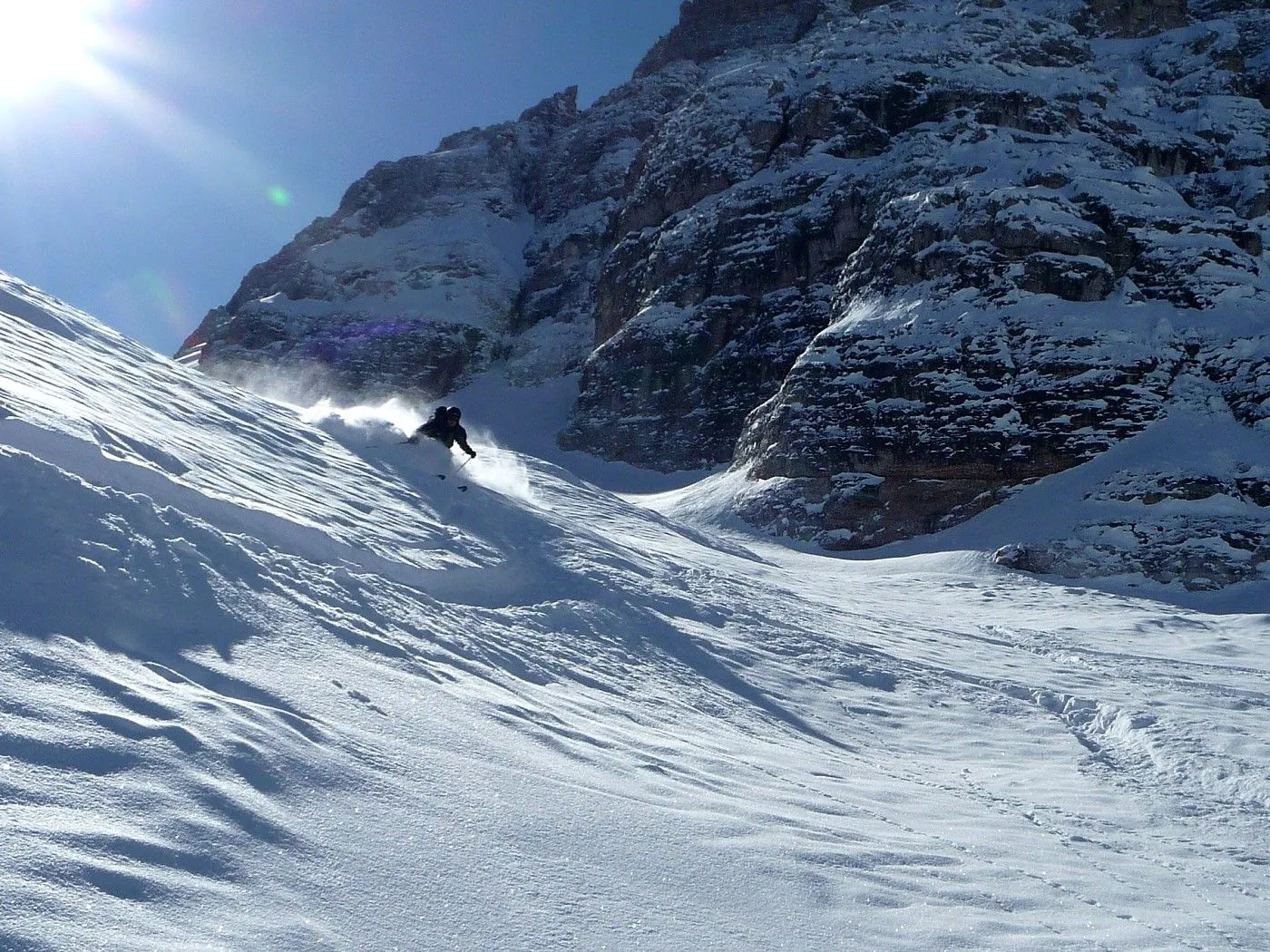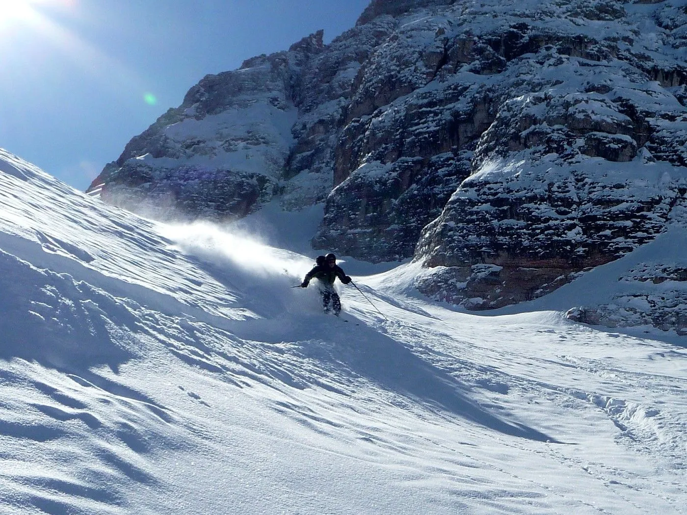 Die Skitour zur Cristallo Scharte (2808m) ist ein absoluter Hochkaräter in den Ampezzaner Dolomiten und besticht durch ihre dramatische, hochalpine Szenerie. Das Erlebnis beginnt im tief eingeschnittenen Val Fonda, das sich wie ein gewaltiger Canyon zwischen den massiven Felswänden hindurchzieht, bevor es sich in das beeindruckende Kar "Circo del Cristallo" öffnet. Konditionell ist die Tour aufgrund der 1300 Höhenmeter fordernd; technisch liegt die größte Hürde am zentralen Felsriegel. Dieser Durchschlupf erfordert bei harten Verhältnissen absolute Trittsicherheit und oft den Einsatz von Steigeisen oder Harscheisen im Stapf-Aufstieg. Dank der schattigen Nordlage ist die Tour oft ein Garant für exzellenten Pulverschnee bis weit in das Frühjahr hinein, setzt jedoch eine sehr sichere Lawinenlage voraus. Zusammenfassend ist die Cristallo Scharte eine technisch wie landschaftlich grandiose Unternehmung für erfahrene Skibergsteiger, die alpine Einsamkeit in einer der spektakulärsten Felskulissen der Alpen suchen.