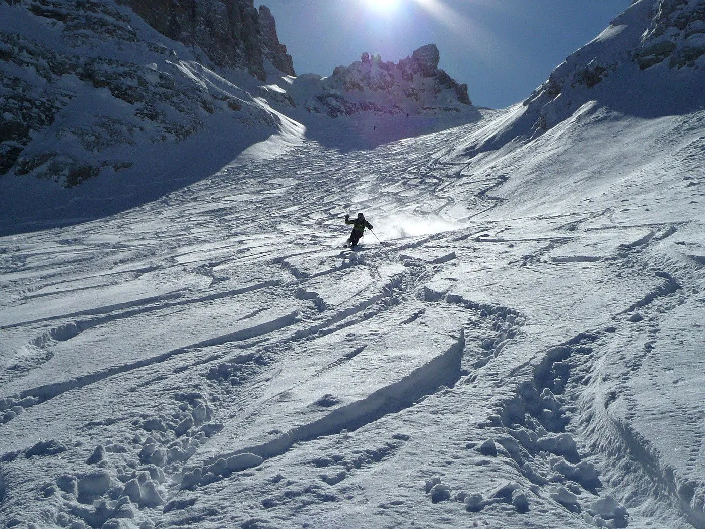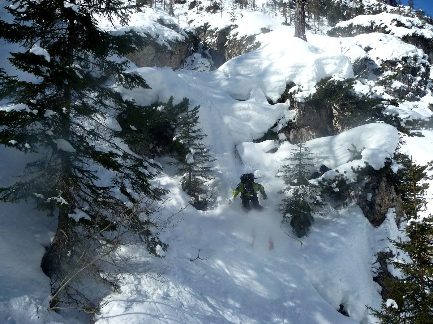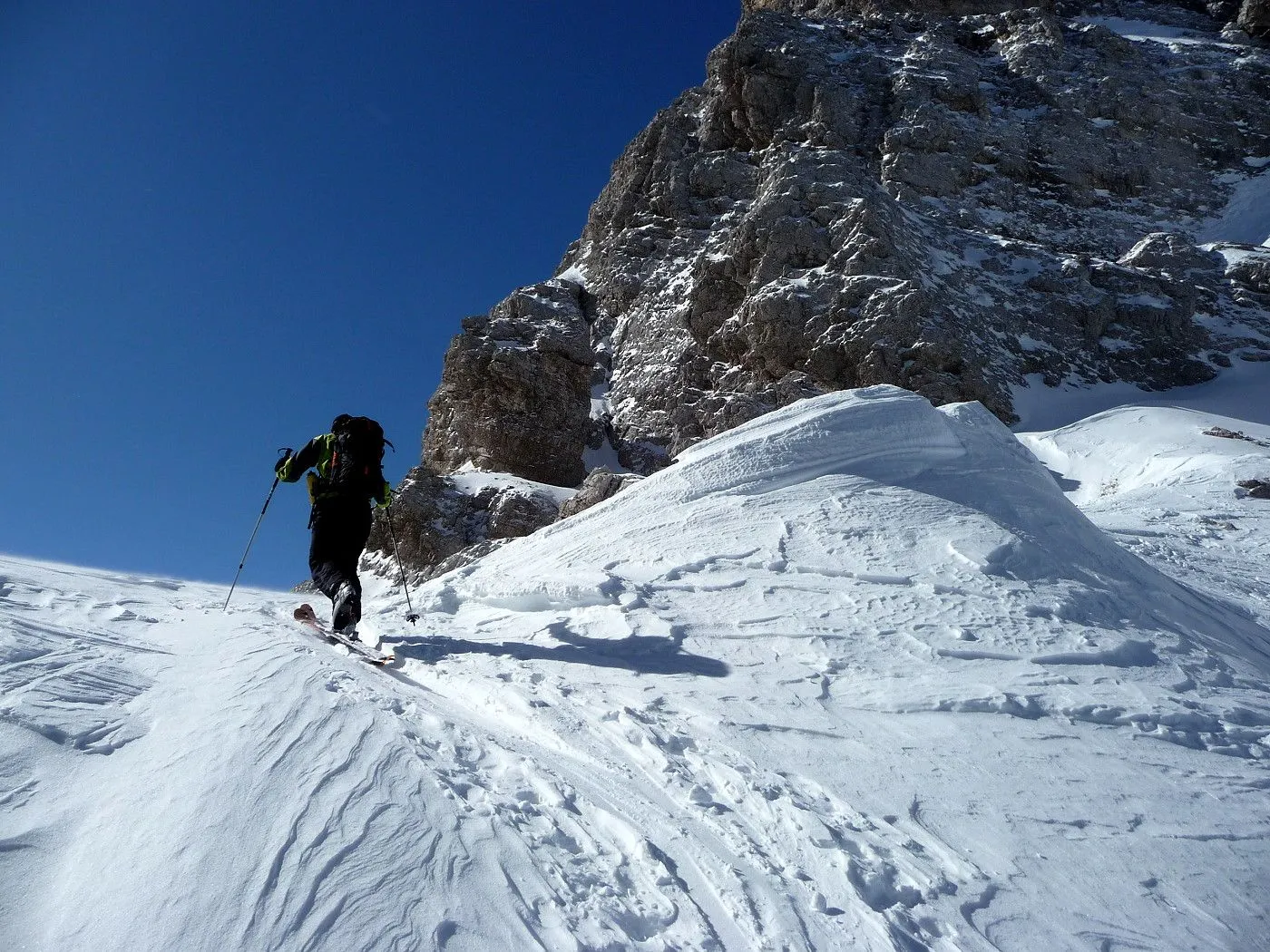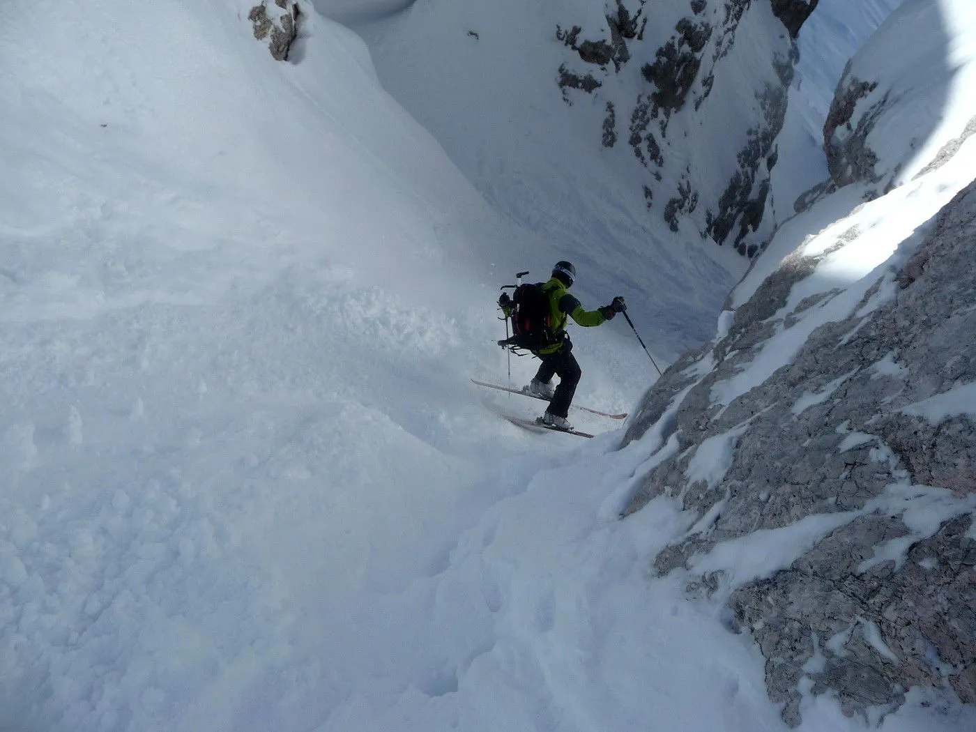 Technik: Schlüsselstelle (schmaler Durchschlupf am Felsriegel) kann bei ungünstigen Bedingungen nur mit Steigeisen bewältigt werden. Gute skifahrerische Fähigkeiten sind notwendig. |