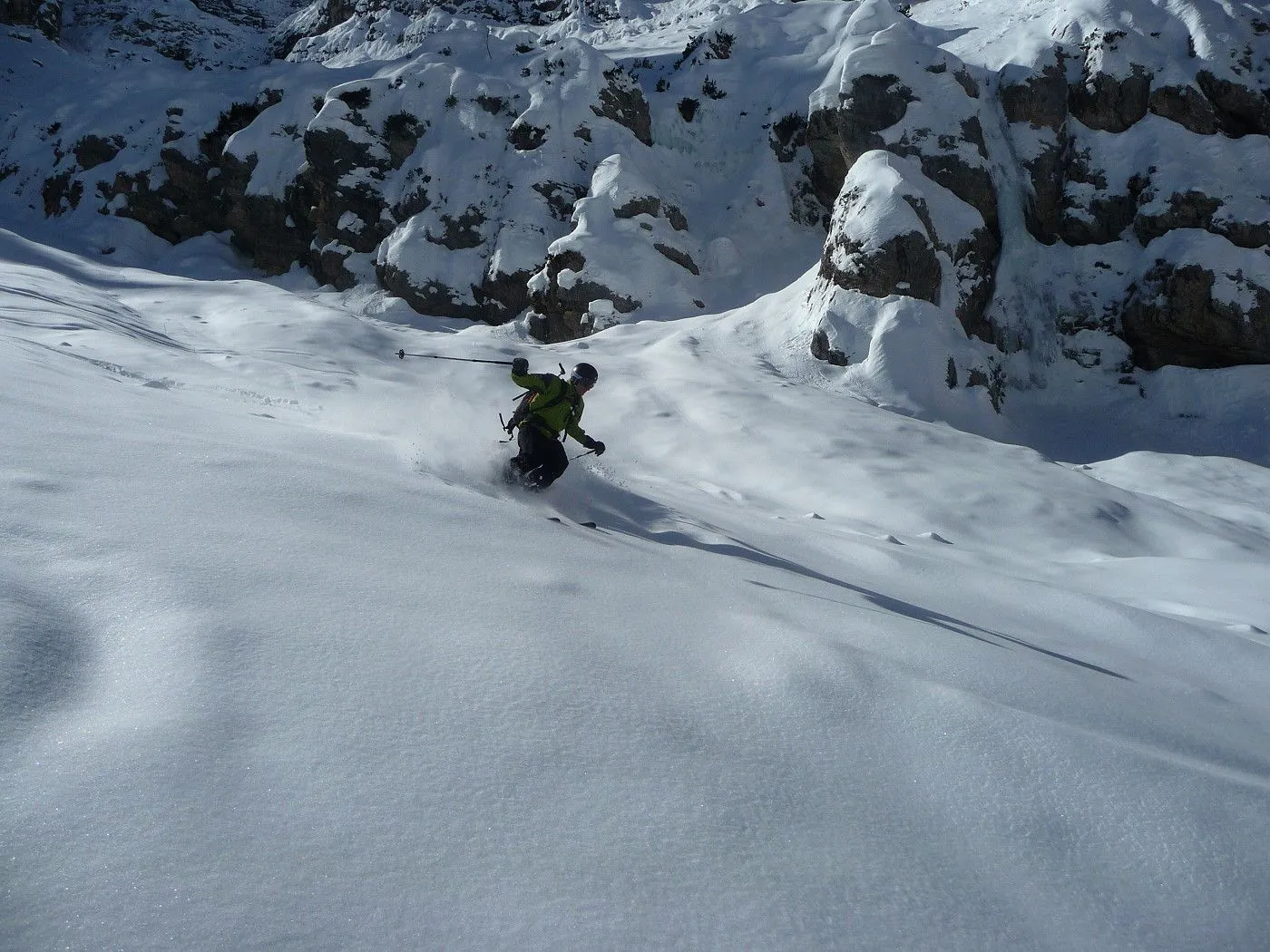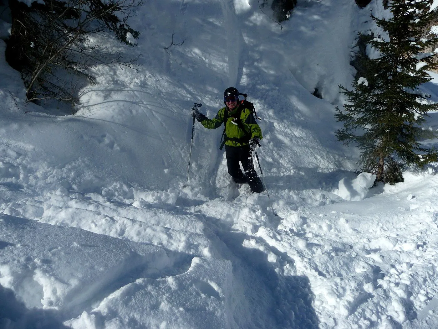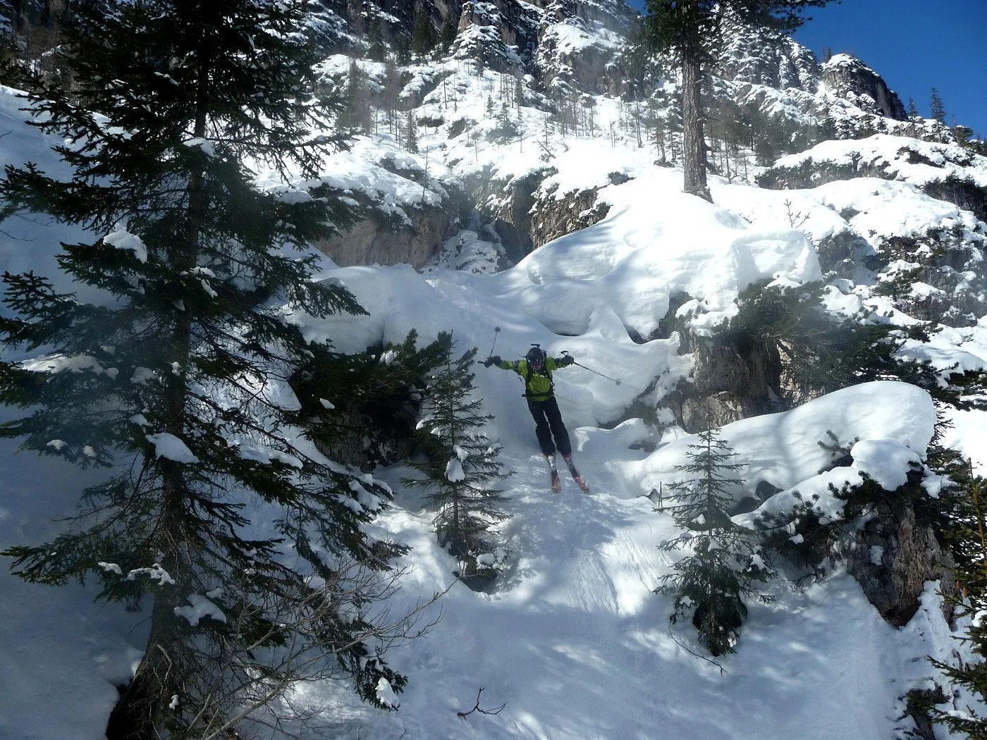 Technik: Schlüsselstelle (schmaler Durchschlupf am Felsriegel) kann bei ungünstigen Bedingungen nur mit Steigeisen bewältigt werden. Gute skifahrerische Fähigkeiten sind notwendig. |