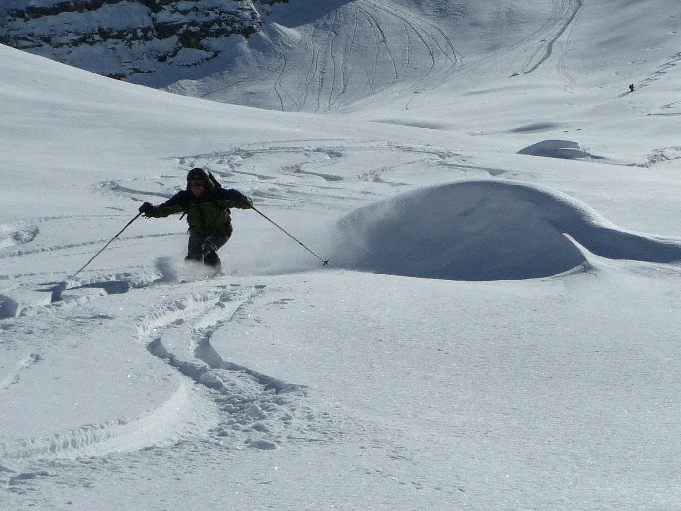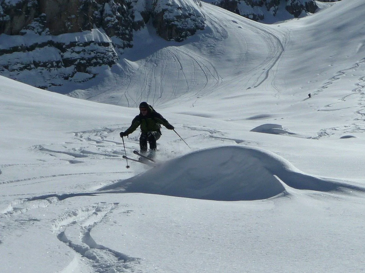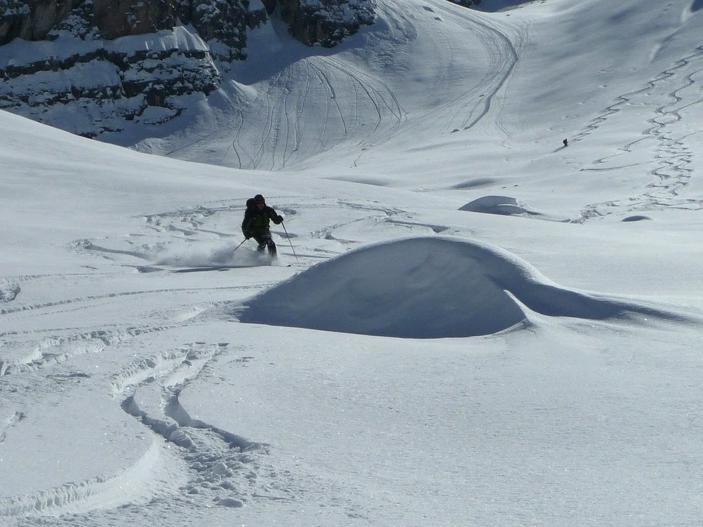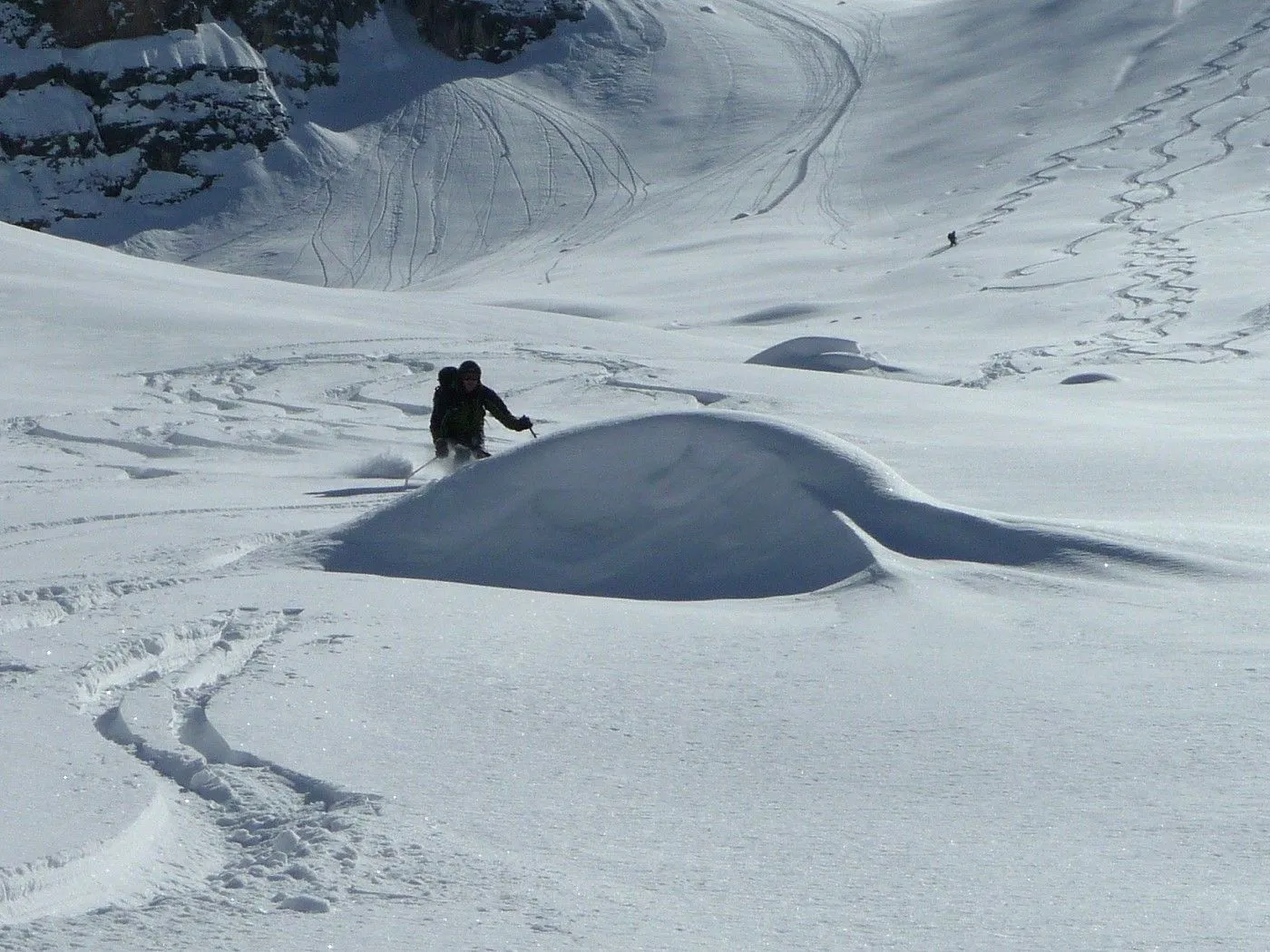 Technik: Schlüsselstelle (schmaler Durchschlupf am Felsriegel) kann bei ungünstigen Bedingungen nur mit Steigeisen bewältigt werden. Gute skifahrerische Fähigkeiten sind notwendig. |