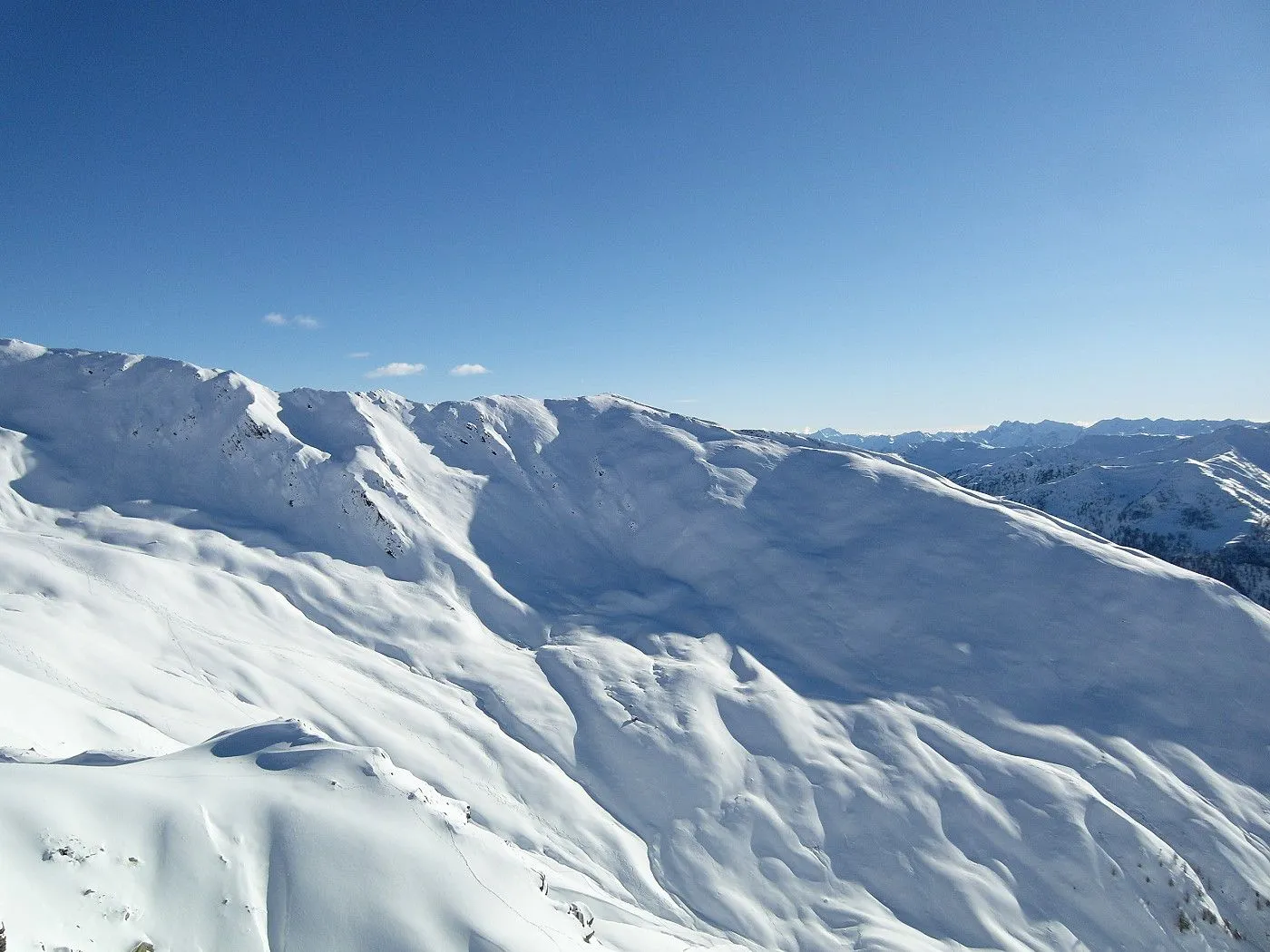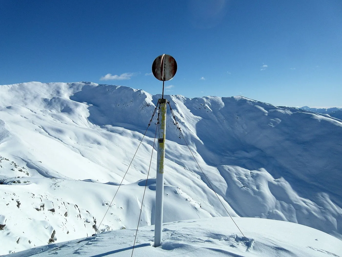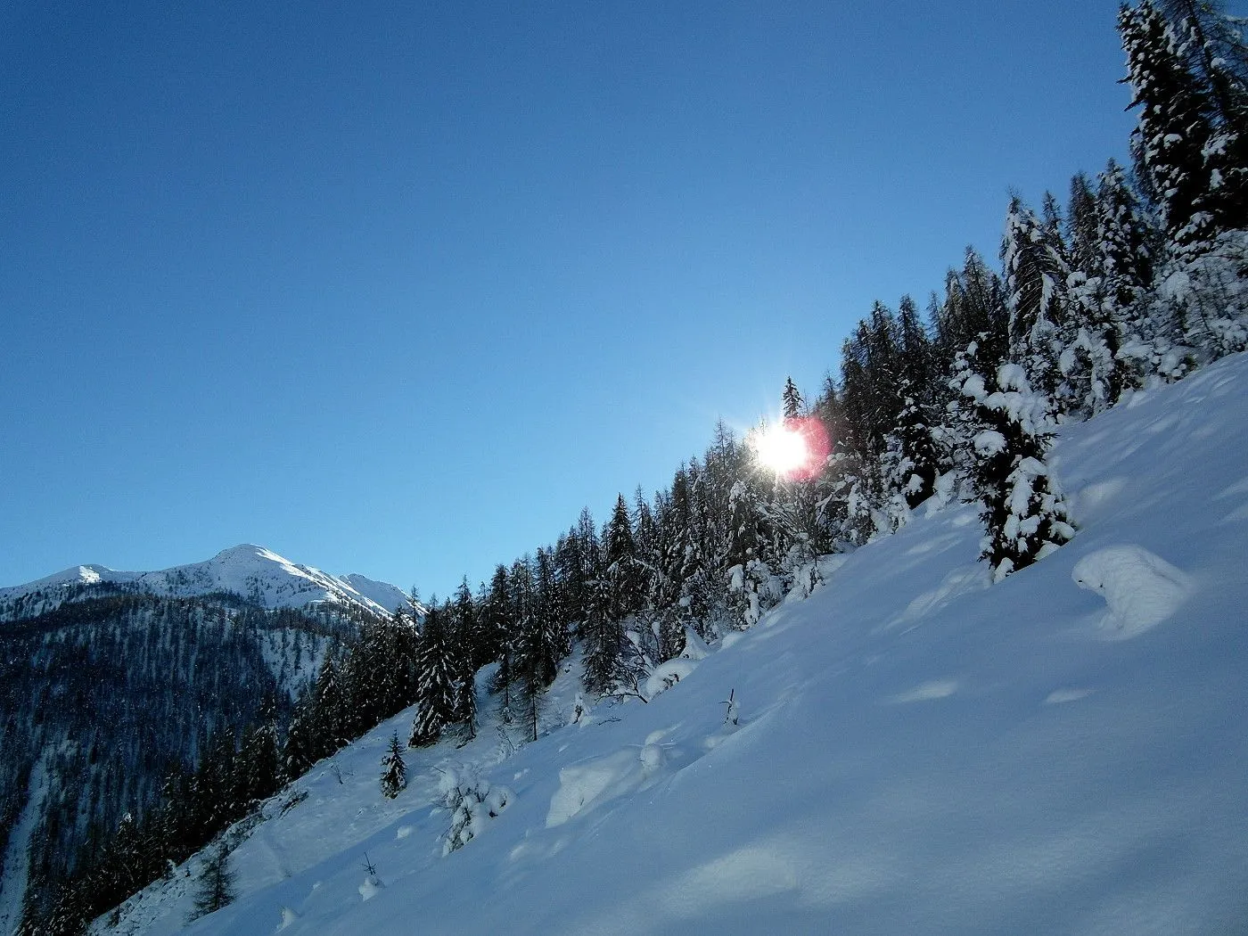 Lawinengefährdung: Im steilen Gelände besteht erhöhte Lawinengefahr, nur bei sicheren Verhältnissen begehen. |