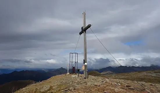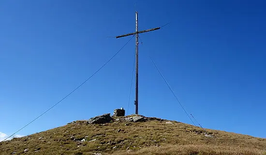 Vom Gipfel ca. 200 Meter entlang des Gipfelgrates wie beim Aufstieg. Nun in östlicher Richtung über eine sehr steile Flanke abwärts, die sich erst auf Höhe 2300m allmählich wieder abflacht. Nun weiter ostwärts sehr steil in das Rosstal hinunter bis man kurz vor der oberen Lipperalm (1940m) auf einen Weg stößt. Über diesen in südöstlicher Richtung zurück zum Ausgangspunkt. Alternative: Abfahrt in Anlehnung zum Aufstieg, die ebenfalls sehr reizvoll ist und wunderbare Hänge zum befahren bietet.