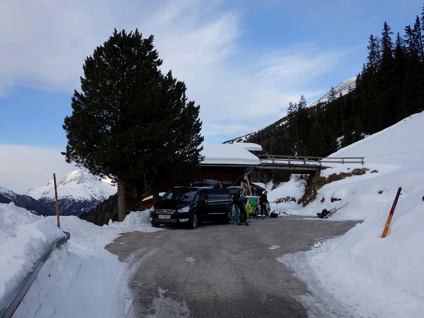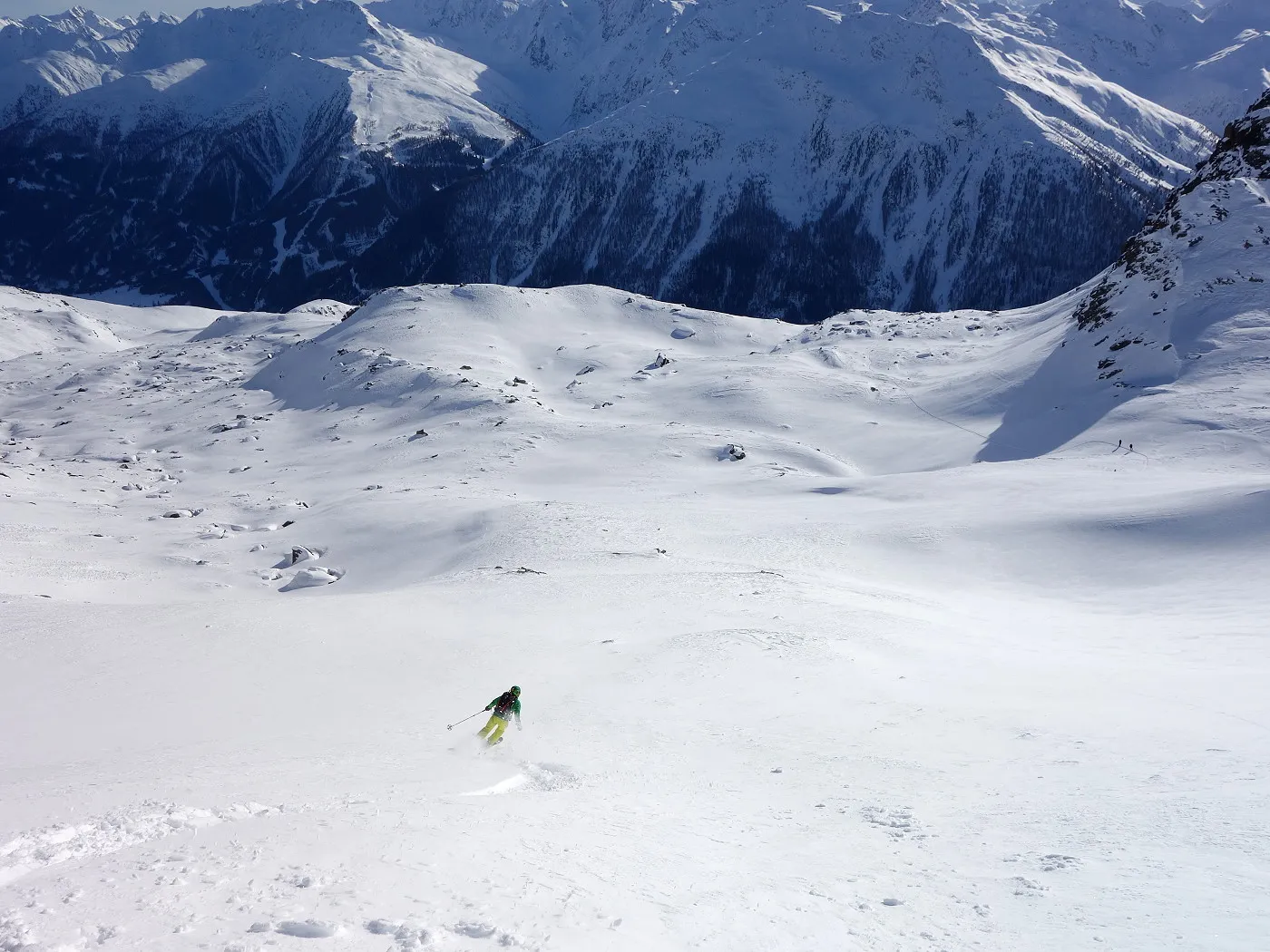 Variante 2: bei sicheren Verhältnissen zunächst direkt in südlicher Richtung über den Gipfelhang abfahren. Nun östlich am Schober vorbei und erneut direkt in südlicher Linie über steile Hänge abfahren. Achtung auf das steil abfallende Gelände, welches man südwestwärts umfährt! Nun ostwärts über einen Hang abwärts und gleich anschließend direkt auf die gut sichtbare Reggnalm (2261m) zu. Oberhalb dieser Alm weiter bis zu den Lawinenverbauungen. Von dort über die bekannten Hänge abwärts bis man auf den Forstweg (1935m) gelangt. Diesem folgt man zurück zum Ausgangspunkt (1705m).
