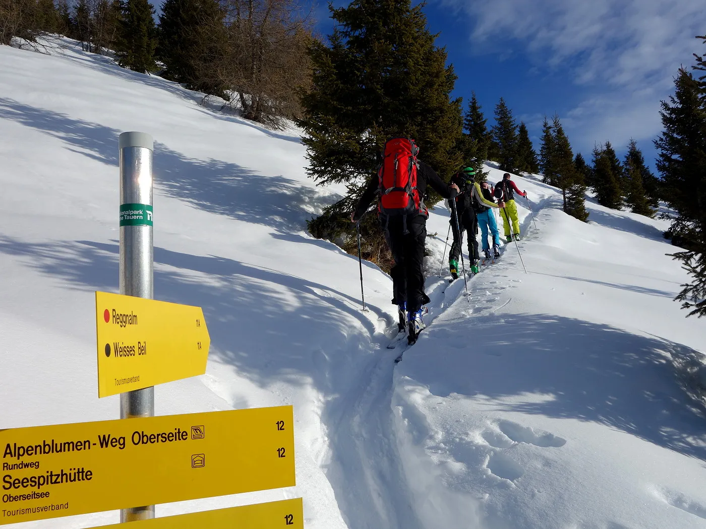 Lawinengefährdung: Im Gipfelbereich und bei der Direktabfahrt steile Passagen – nur bei sicheren Verhältnissen durchführen. |