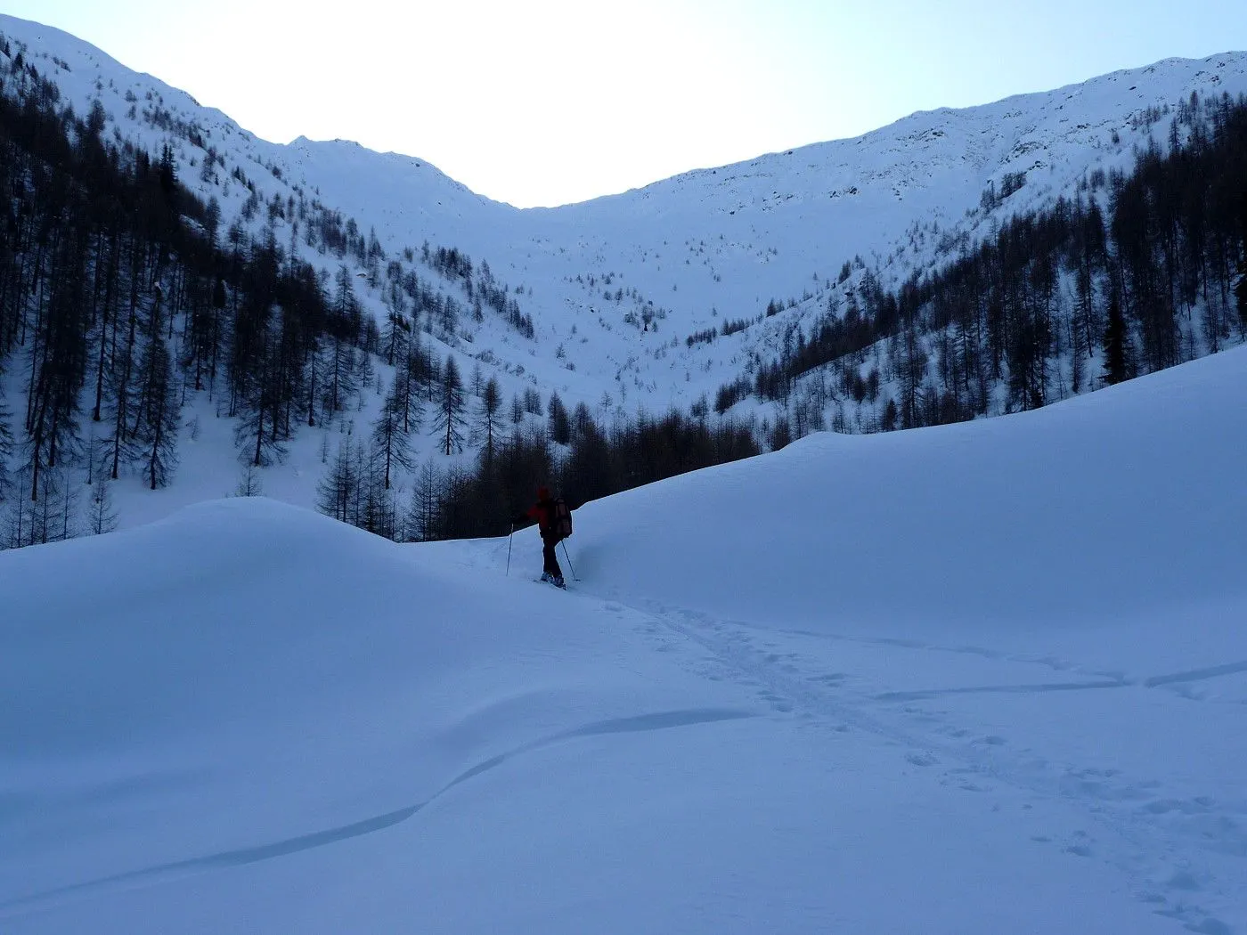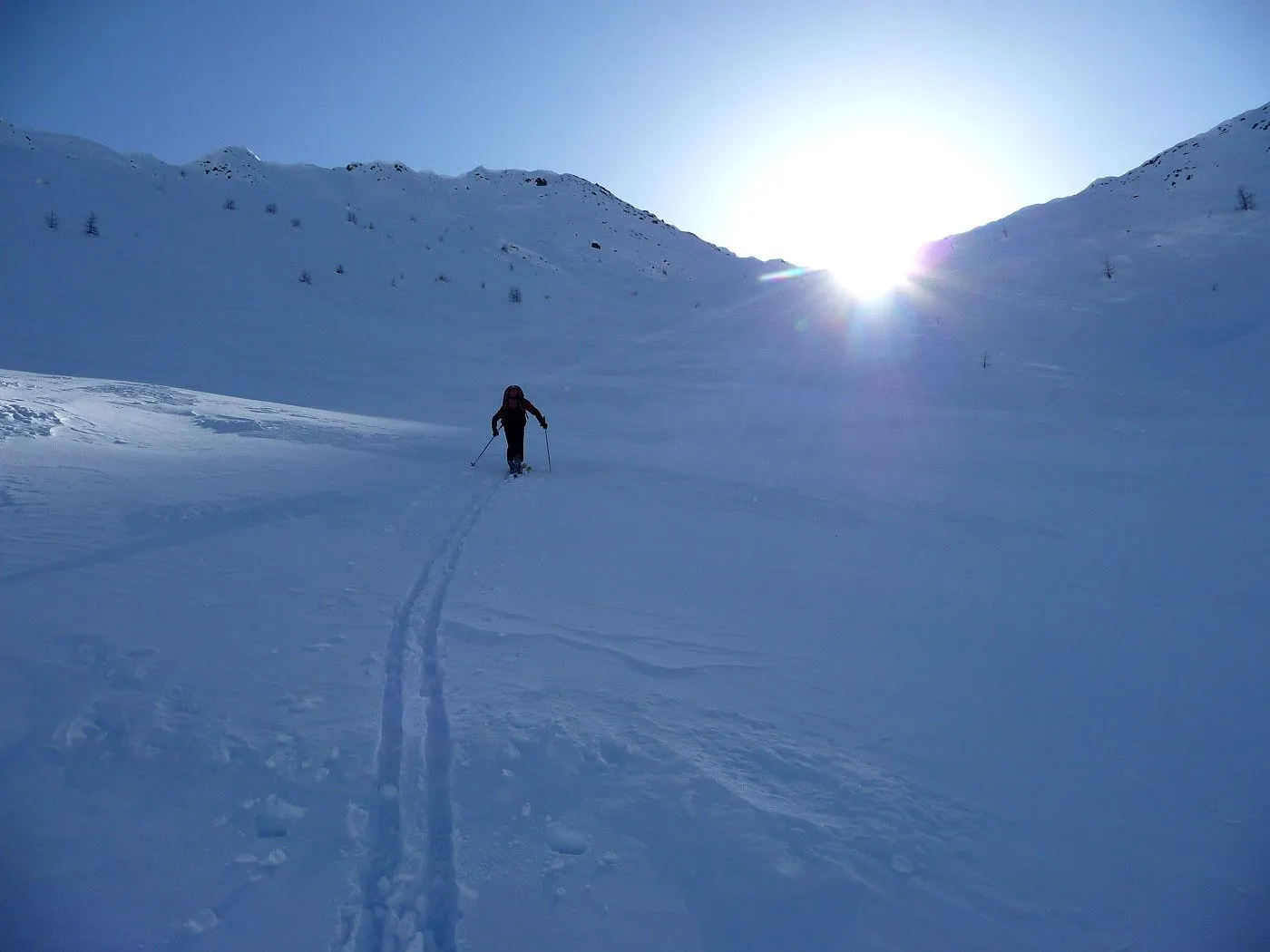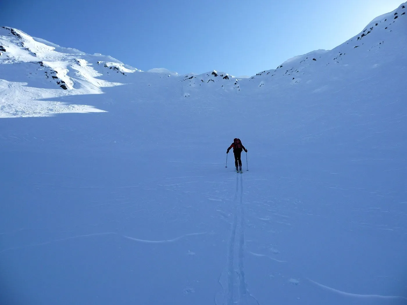Zunächst in nördlicher Richtung zum Pfanntörl (2508m). Achtung vom Pfanntörl abfahrend, muss man den ersten Hang beachten, da auch da ein Schneebrett bei ungünstigen Verhältnissen ausgelöst werden kann. Danach stets in östlicher Richtung bis zur Ruschletalm und weiter bis man den Wegweiser vom Tourenstart (1737m) erreicht. Danach über die Alfenalm (1700m) nach Kalkstein (1639m).