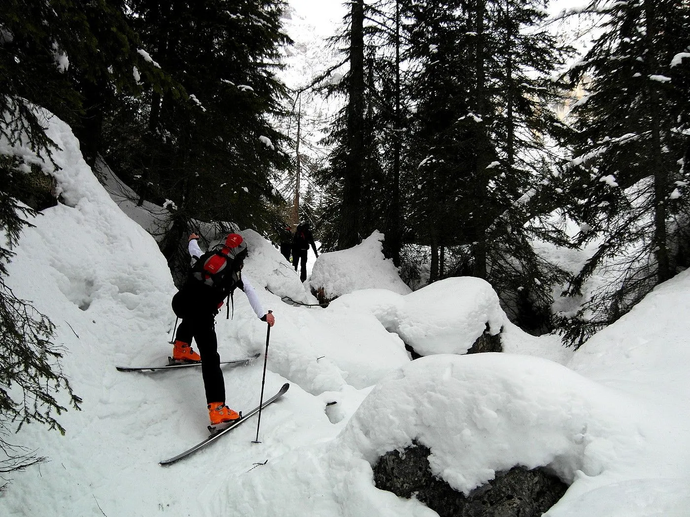 Lawinengefahr: Hohe Aufmerksamkeit bei Lawinenkegeln am Aufstieg; Aufstiegs- und Abfahrtsrouten auf Lawinengefahr prüfen. |