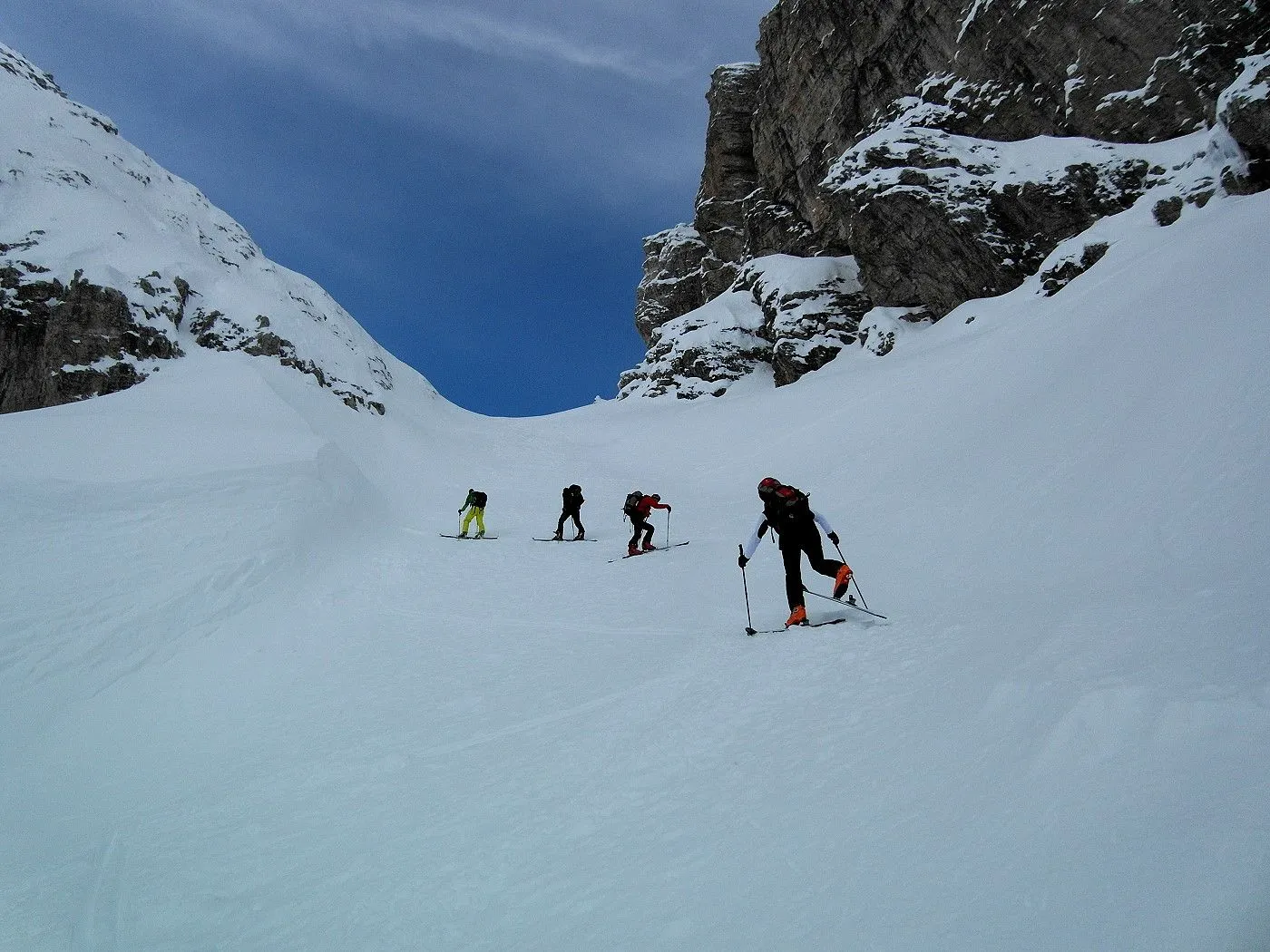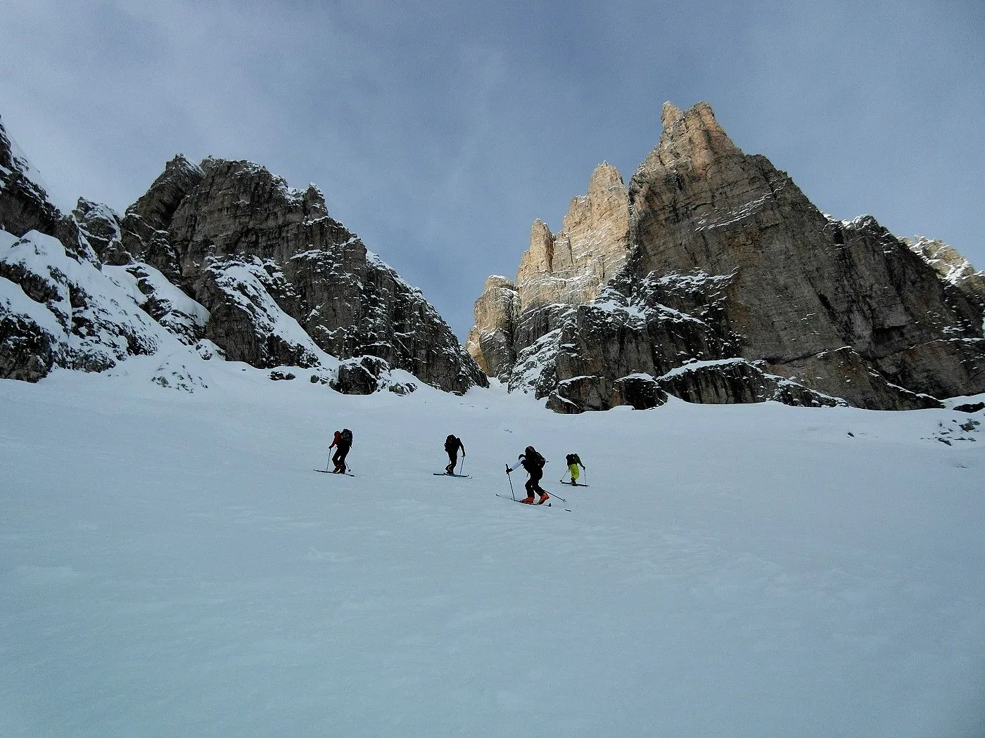 Insgesamt eine sehr selektive Skitour in den Sextner Dolomiten. Bereits der Anstieg bis zu Bertihütte ist recht mühevoll und nicht einfach zu begehen. Zwar sind dann die gröbsten Schwierigkeiten überwunden, doch zieht sich der weitere Aufstieg doch noch recht. Auch die Abfahrt Richtung Fischleintal ist im obersten Bereich sehr steil und führt durch eine recht enge Rinne. Trotzdem ist diese Variante der Abfahrt allemal der Abfahrt retour zum Ausgangspunkt vorzuziehen. Sehr gutes skifahrerisches Können ist bei beiden Varianten vonnöten! Diese Skitour ist nur erfahrenen und konditionsstarken Skitourengehern zu empfehlen.