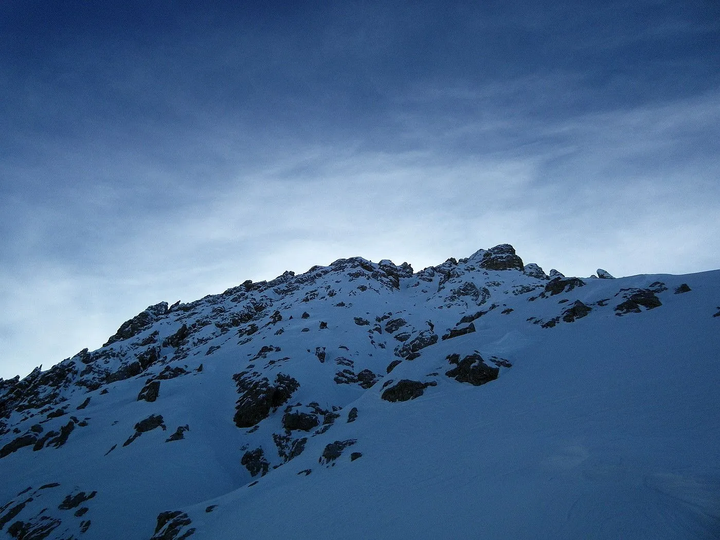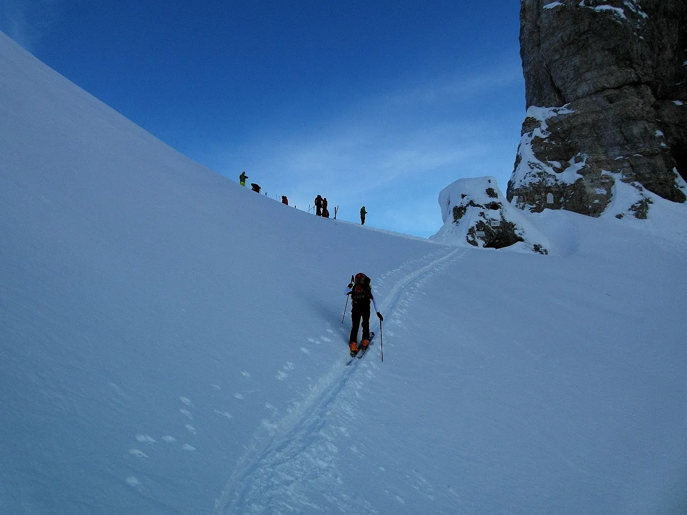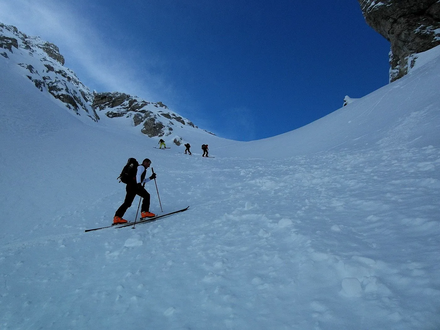Technik: Anspruchsvolle Skitour; steile Passagen beim Aufstieg erfordern eine sichere Spitzkehrentechnik und enge Rinnen bei der Abfahrt ein sehr gutes skifahrerisches Können. |
