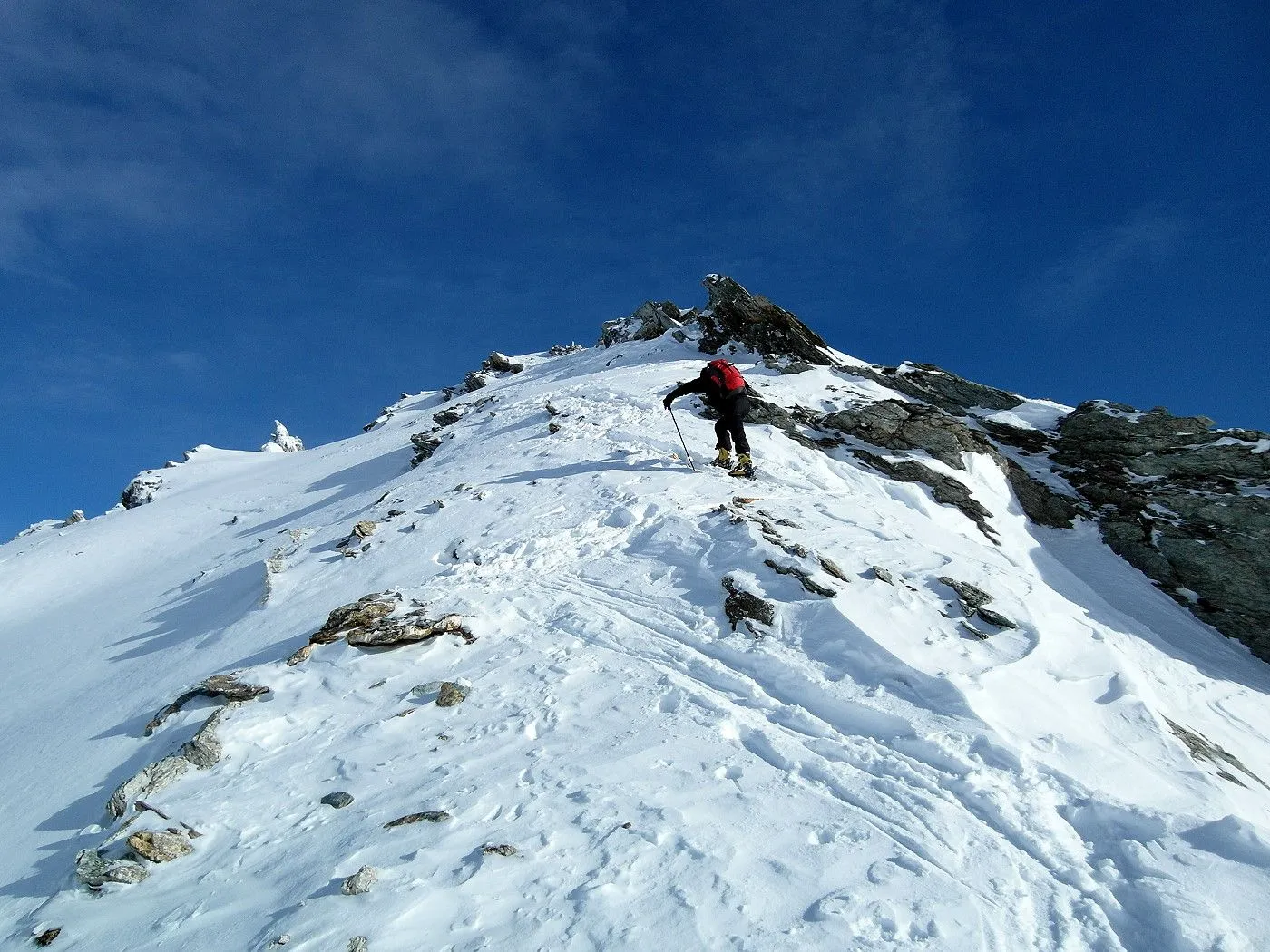 Technik: Gipfelgrat bei guten Bedingungen mit Spitzkehrentechnik begehbar; bei ungünstigen Bedingungen sehr schwierig, Trittsicherheit erforderlich. |