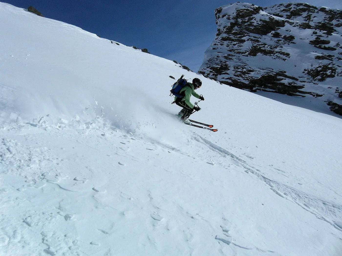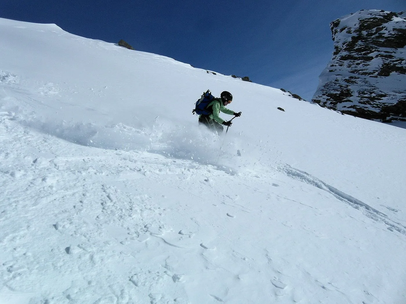 Lawinengefahr: Nur bei sicheren Verhältnissen; Südflanke lawinengefährdet, Abfahrt nur bei sicheren Bedingungen. |